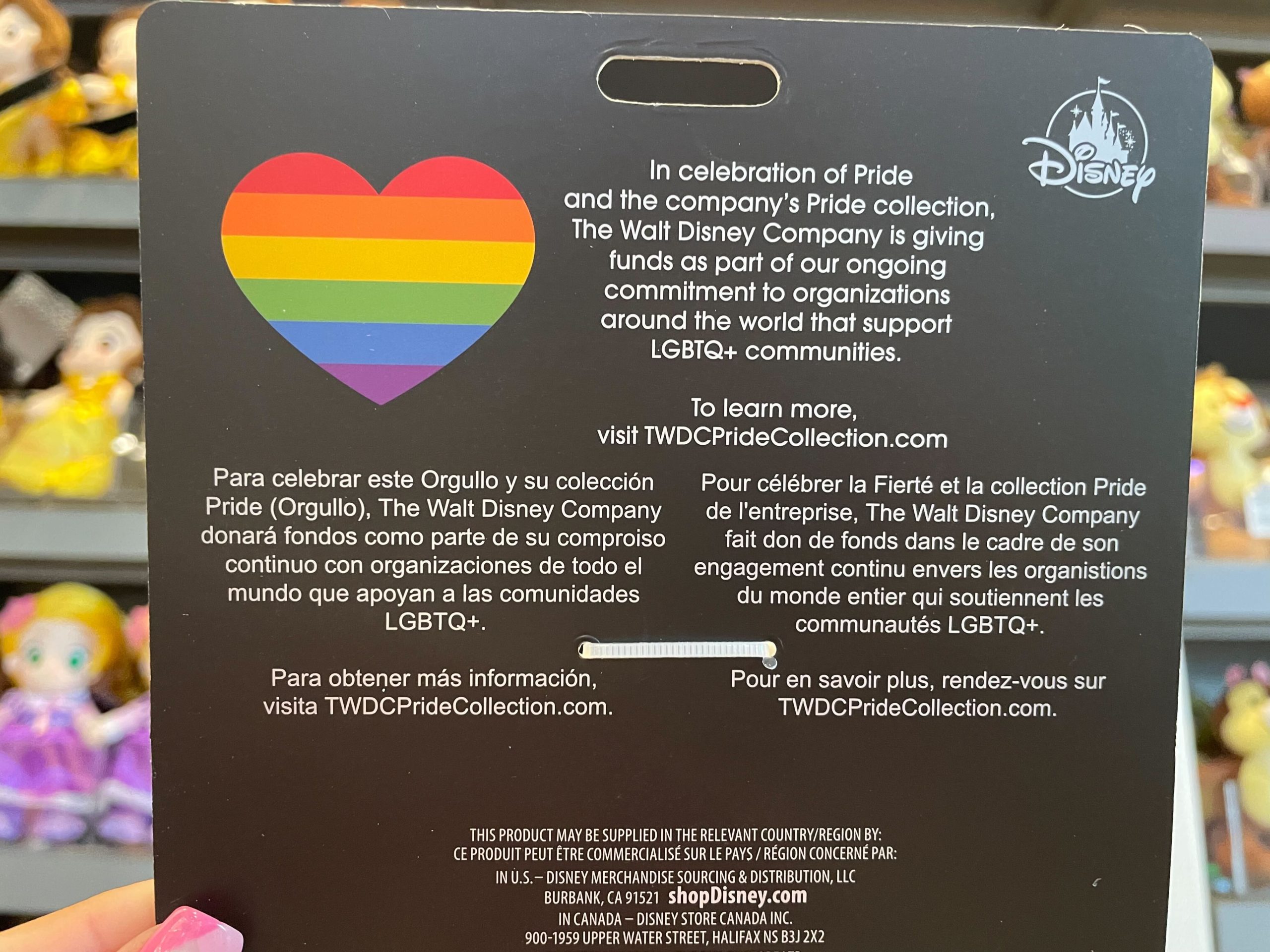 It comes on a special Disney Pride Collection backing card.