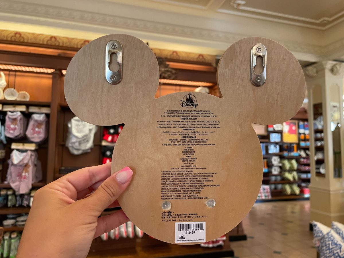 Hardware for mounting the hanger is on the back. This was in the Emporium at Magic Kingdom.