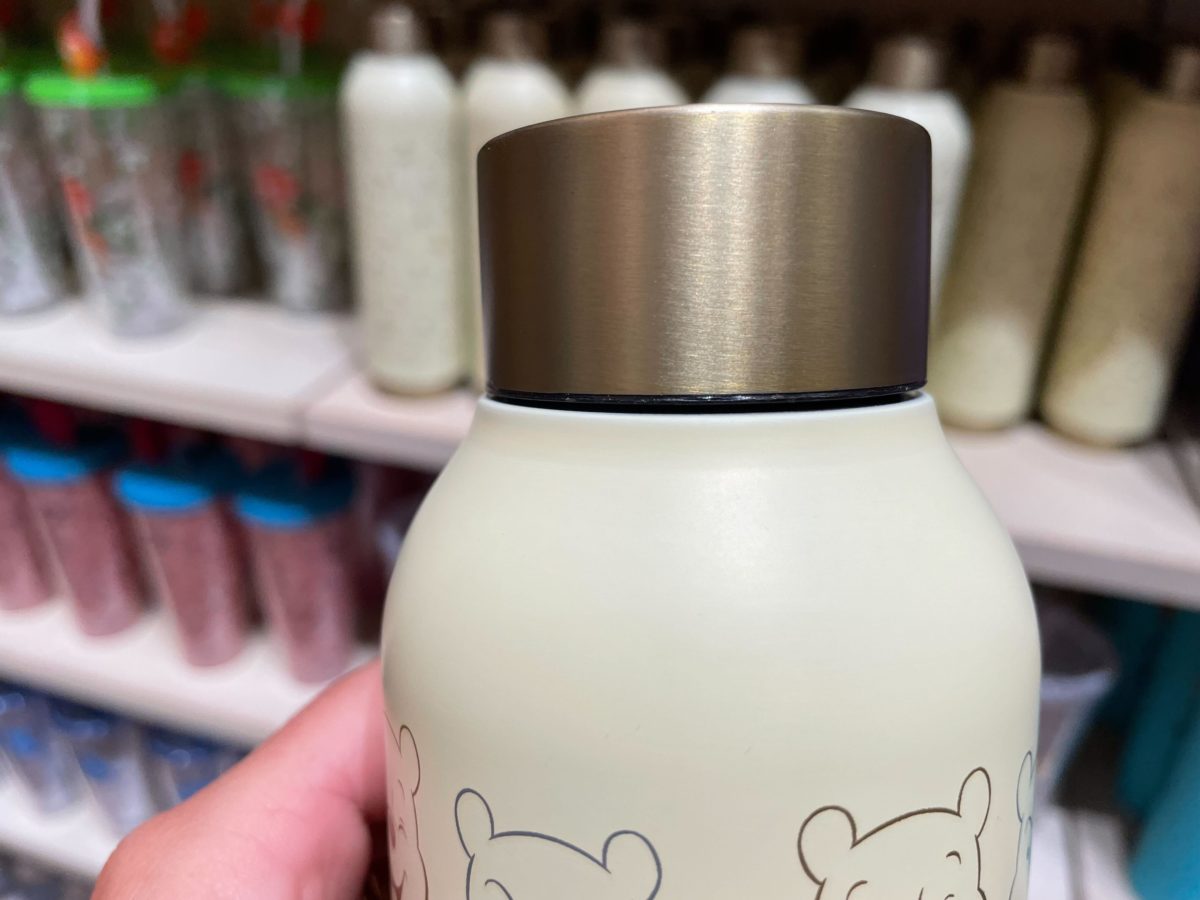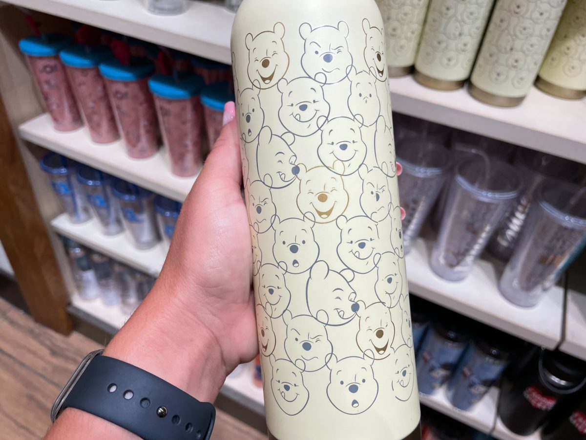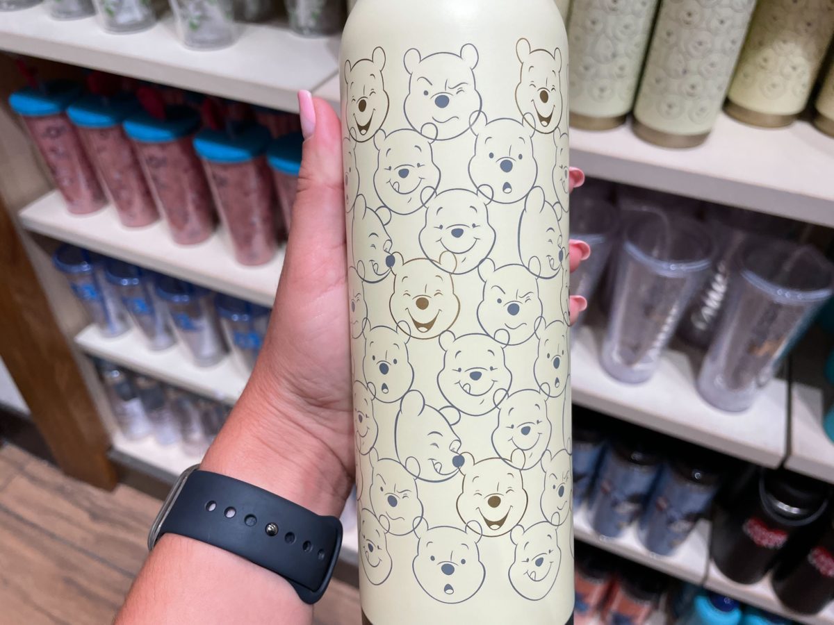 This off-white bottle is patterned all-over with Winnie the Pooh’s face making different expressions.