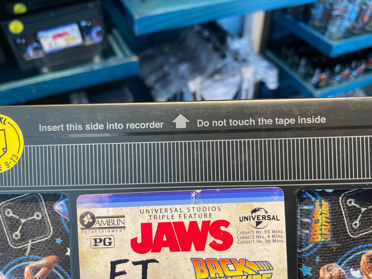 The packaging makes this look like a well-loved tape for the triple feature of “Jaws,” “Back to the Future,” and “E.T.” It even lists their run times on the label.
