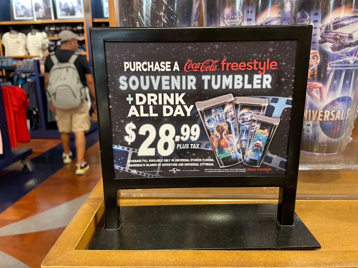 For $28.99, guests get the tumbler and free beverage refills all day throughout Universal Orlando Resort.