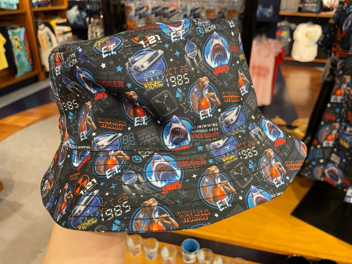 This black bucket hat is patterned all over with images from “E.T.,” “Jaws,” and “Back to the Future.”