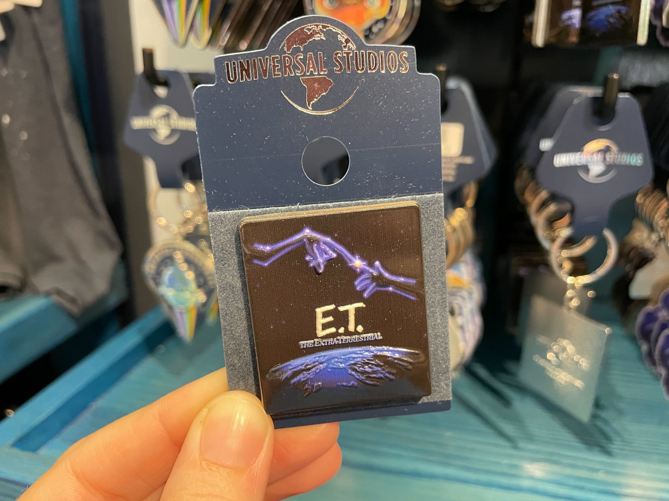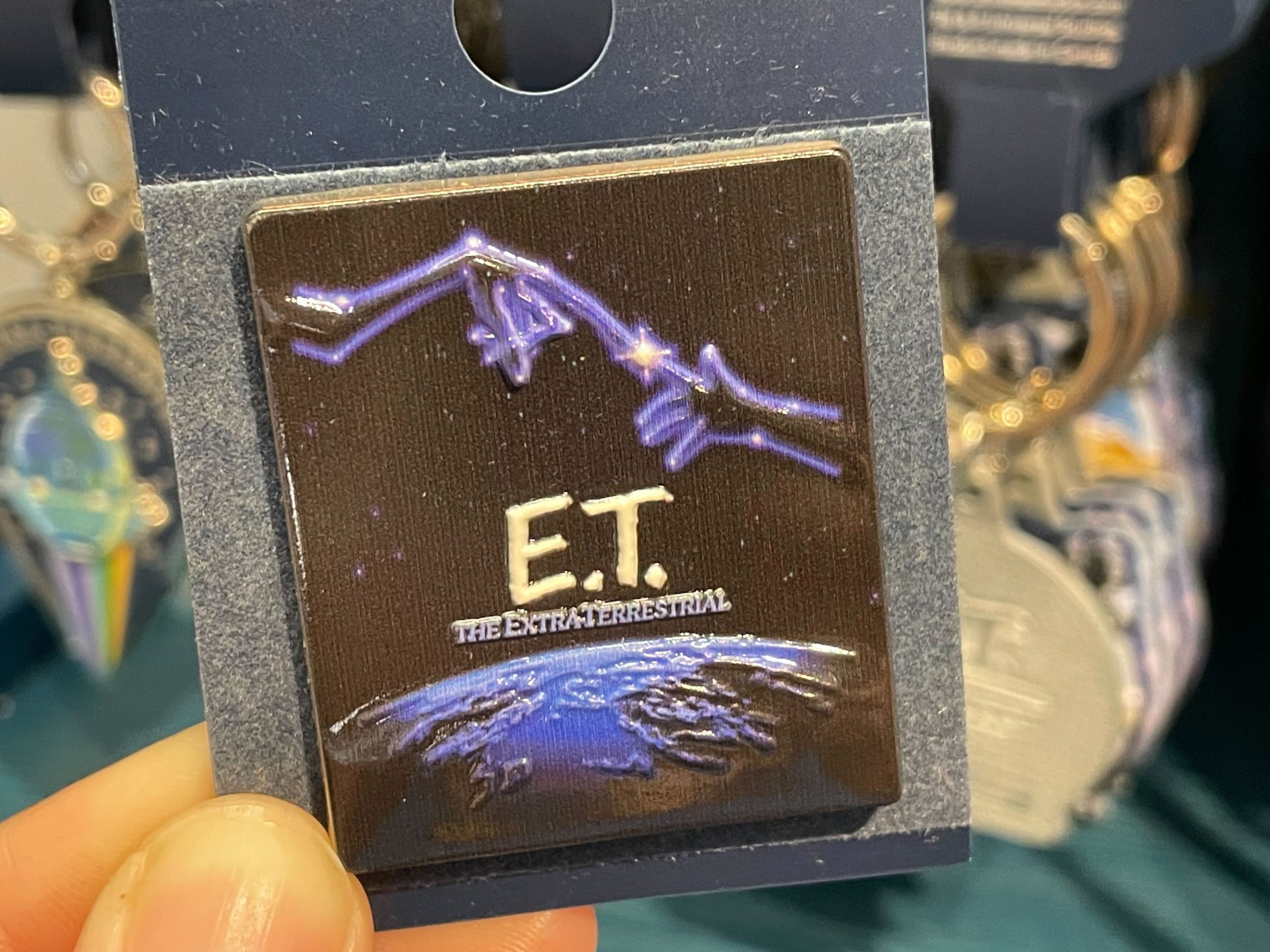 This rectangular pin also features a constellation image of E.T. and Elliott’s hands touching.