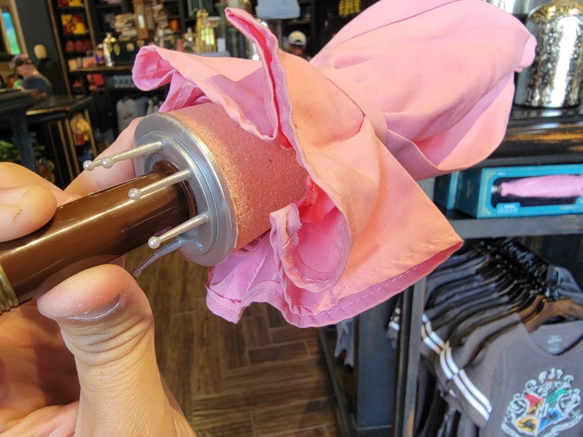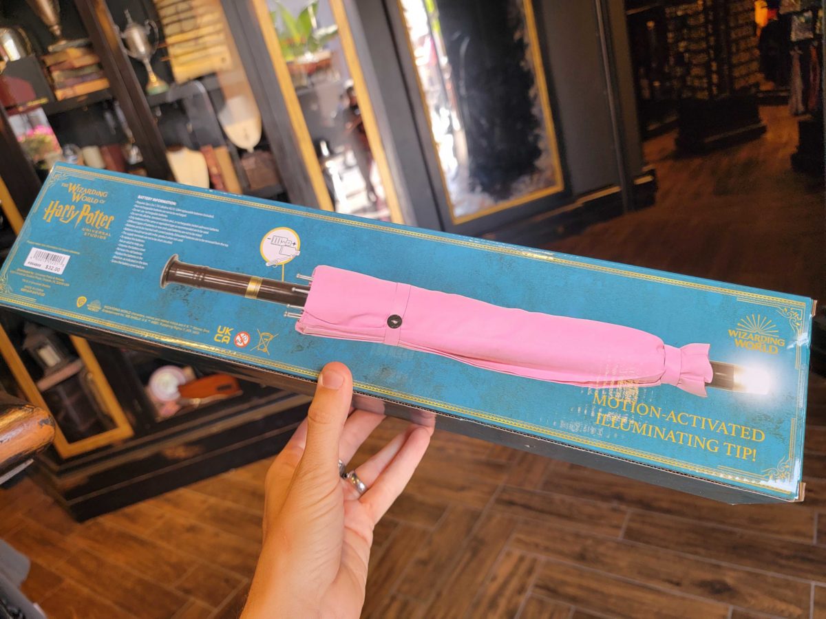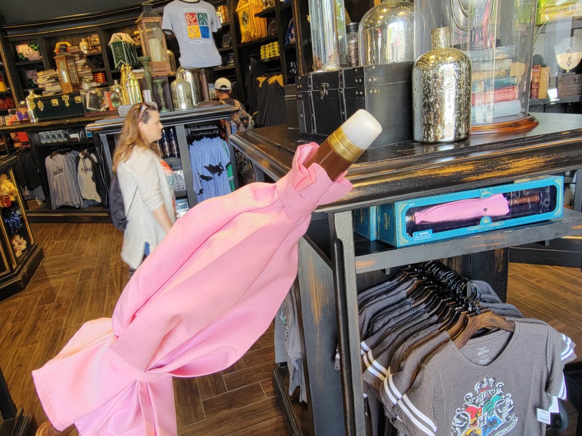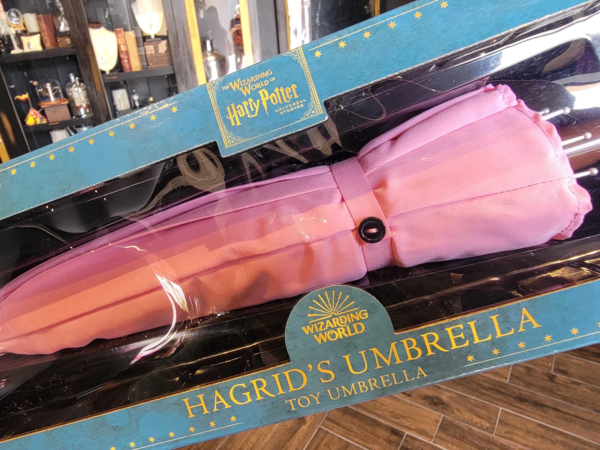 A toy version of Rubeus Hagrid’s umbrella from “Harry Potter” is now available at Universal Studios Hollywood, after initially arriving at Universal Orlando Resort. We first found it in the Universal Studios Store Upper Lot. A more authentic prop replica is also available, but for significantly more — it started at $75 and is now approximately $125.