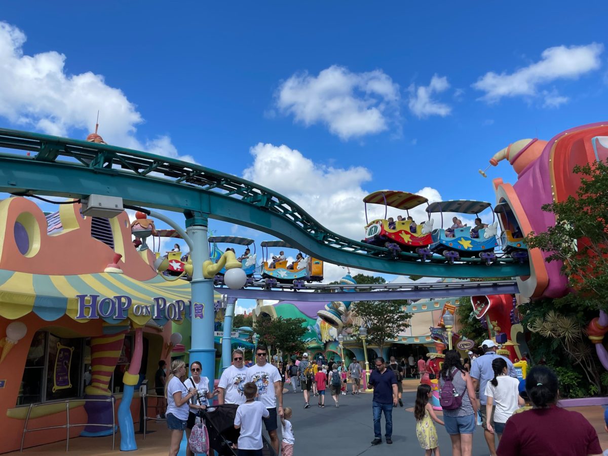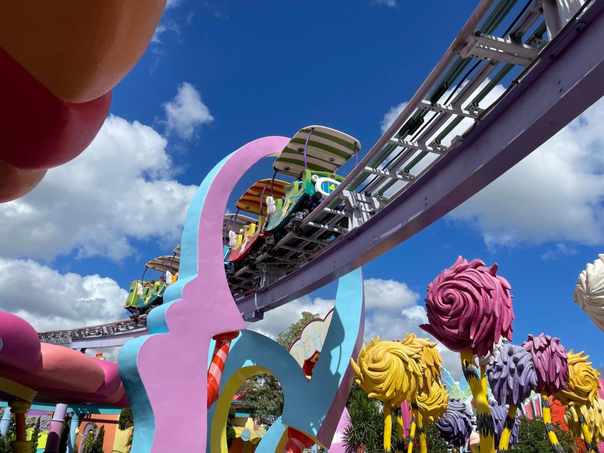 At Islands of Adventure, we were excited to find Seuss Landing looking good! If I Ran the Zoo recently reopened and now Caro-Seuss-el has reopened! It’s been so long since we could take a ride on the carousel.