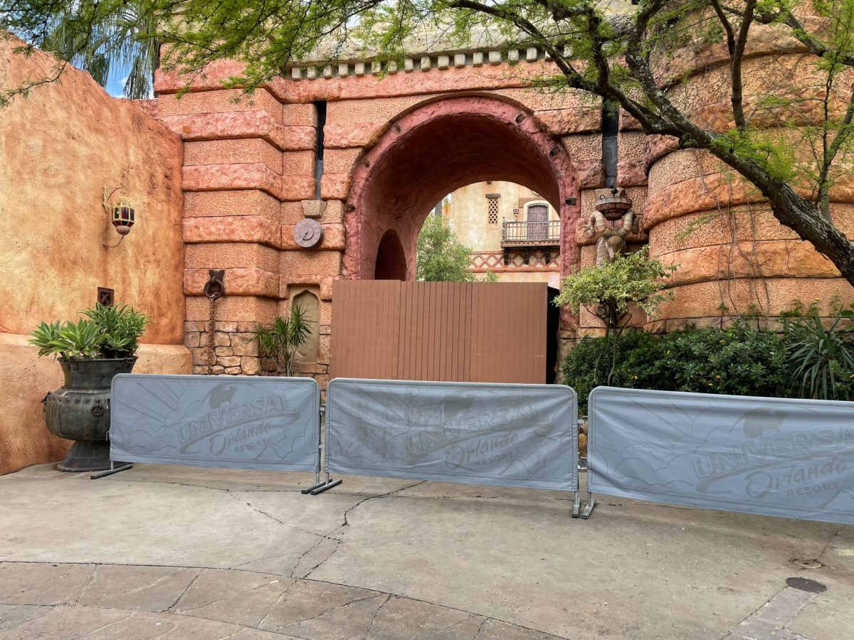 A small, brown construction wall has been set up in the arch behind the Mystic Fountain in the Lost Continent.