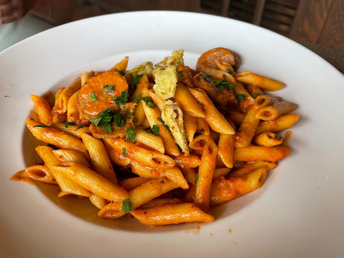 The Penne a la Vodka was delicious. What a great way to relax away from the crowds.