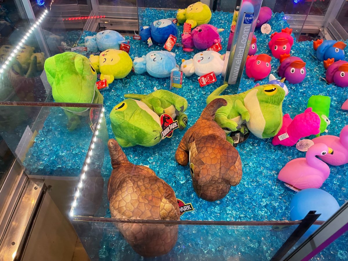 The arcade in Marvel Super Hero Islands is a great way to escape the rain or heat and win some prizes. These Jurassic Park plush in the claw machine are adorable.