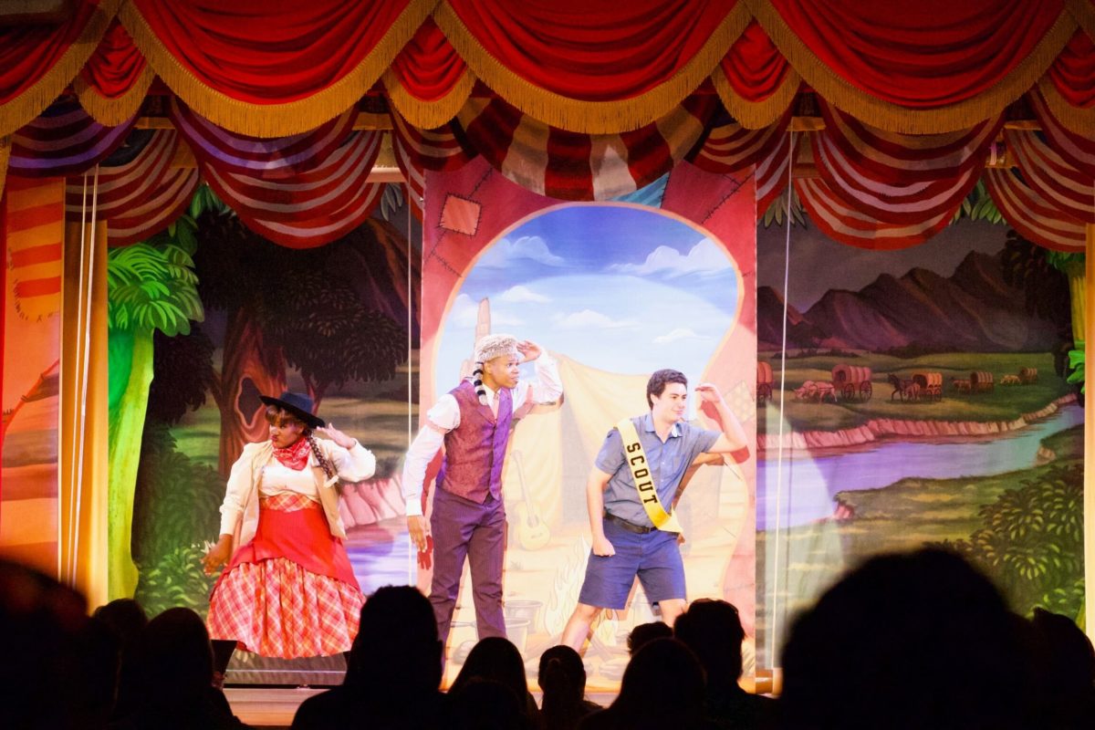 - The “Pioneer Hall Players” backdrop on stage was completely replaced. The former had several depictions of Native Americans, while the new one has instruments and a stagecoach.