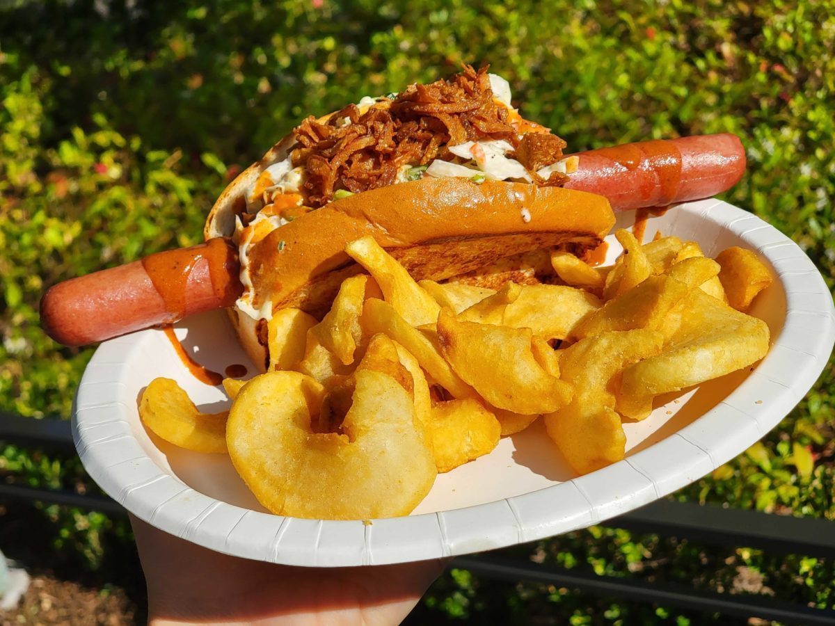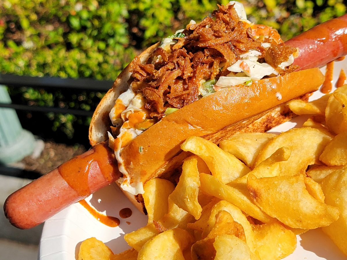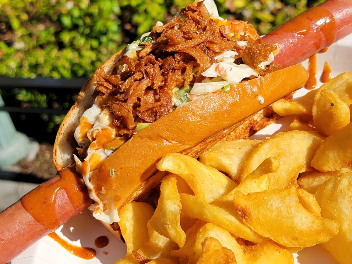 REVIEW: Almost Perfect BBQ Pulled Pork Dog, Peaches and Cream Funnel Cake Fries at Award Wieners in Disney California Adventure