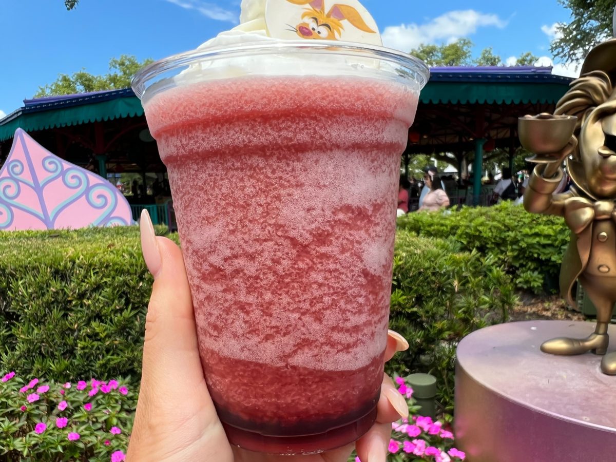 REVIEW: Refreshing 50th Anniversary March Hare-Inspired Hibiscus Tea at Cheshire Cafe in Magic Kingdom