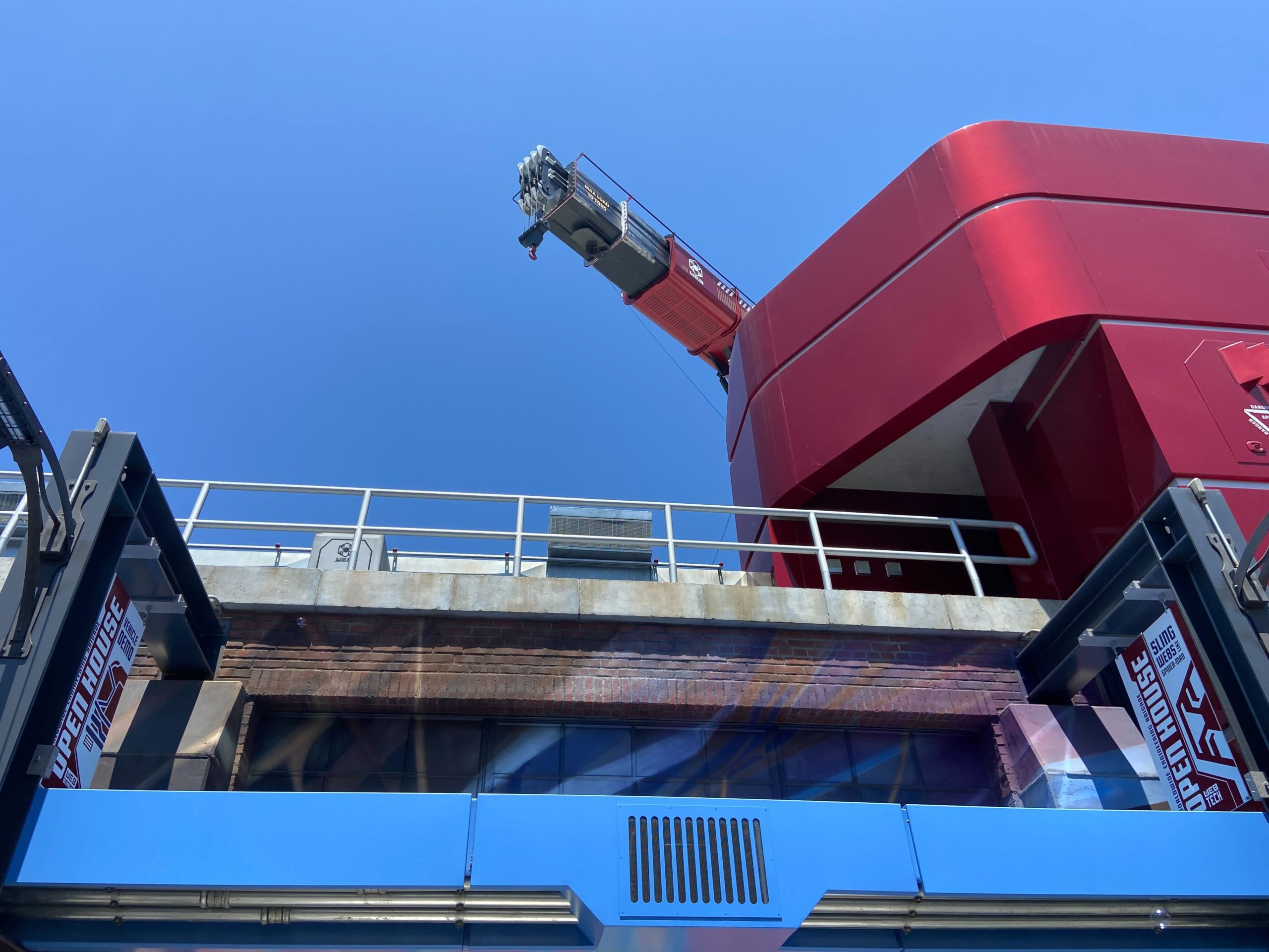 Instagram user @mdglee_szm shared a video today of the Spider-Man “Stuntronic” robot failing to release from a wire and crashing into a building during the show at Avengers Campus in Disney California Adventure.