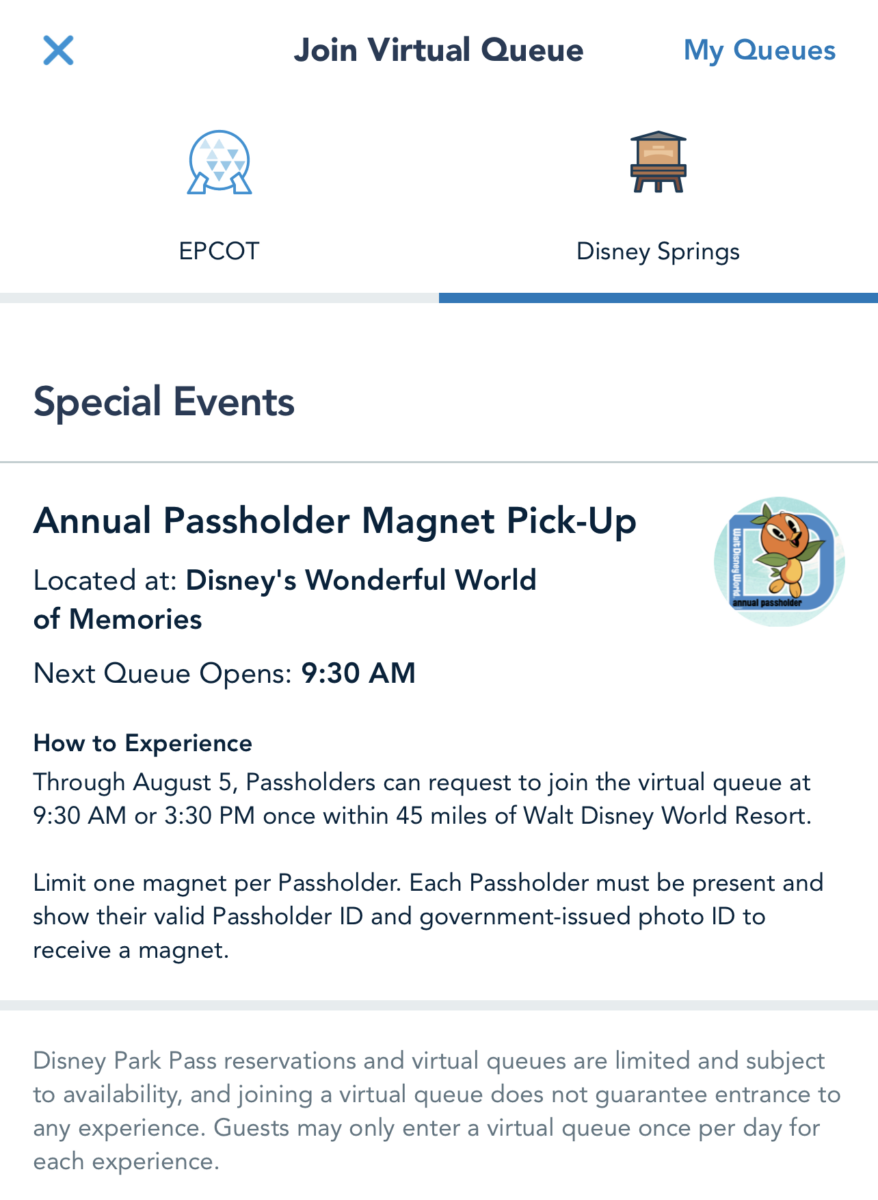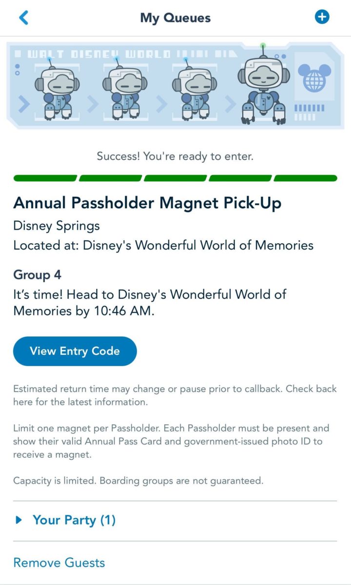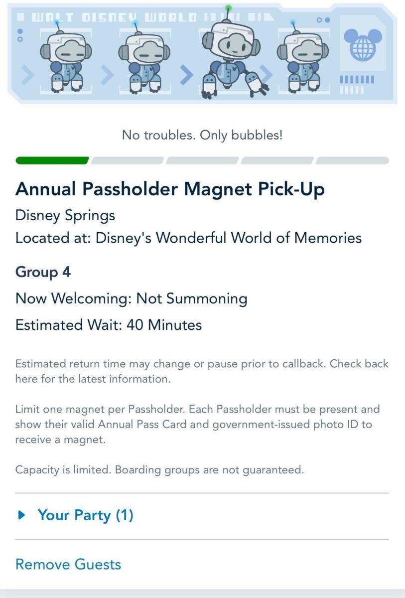 Passholders can join a virtual queue for picking up the magnet via My Disney Experience.