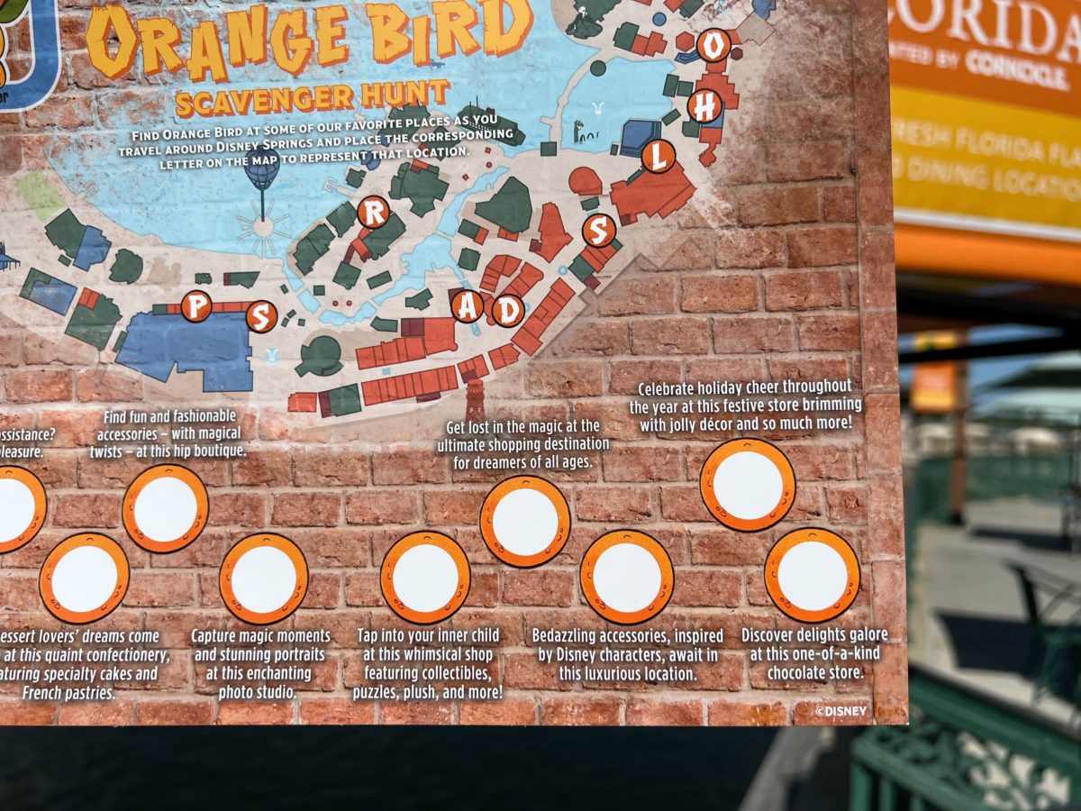 The Orange Bird scavenger hunt sends guests around Disney Springs, which is currently celebrating Flavors of Florida.