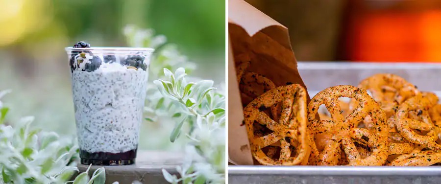 At Docking Bay 7 Food and Cargo, you’ll find the tasty Blue Milk Chia Pudding. This treat is made with a coconut milk and chia seed blend, fresh berries, pepitas, and shredded coconut. For a sweet and savory combination, Jat Kaa’s Coolers has Peka Wheat Gear Puffs, crispy wheat puffs in a savory and spicy seasoning blend.