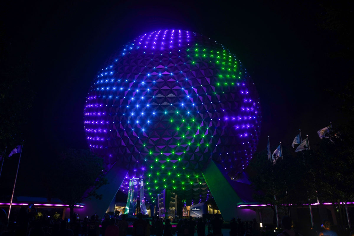 A new “Beauty and the Beast”-themed Beacons of Magic show has debuted for Food & Wine Festival. It takes place nightly at Spaceship Earth using the Points of Light installed last year on the geodesic dome.