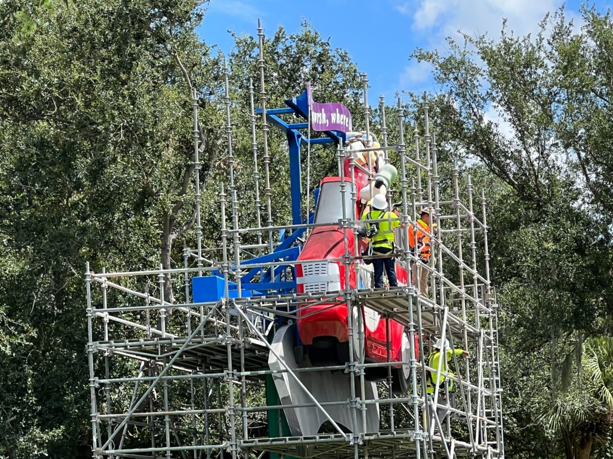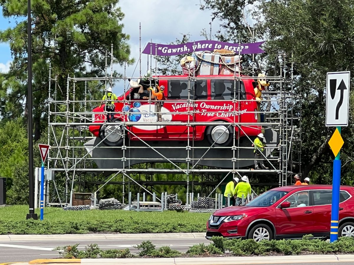 Another one of the most iconic signs from Walt Disney World could be on the chopping block. The Disney Vacation Club billboard featuring a van driven by Goofy is surrounded with scaffolding. We spotted the project underway on Buena Vista Drive.