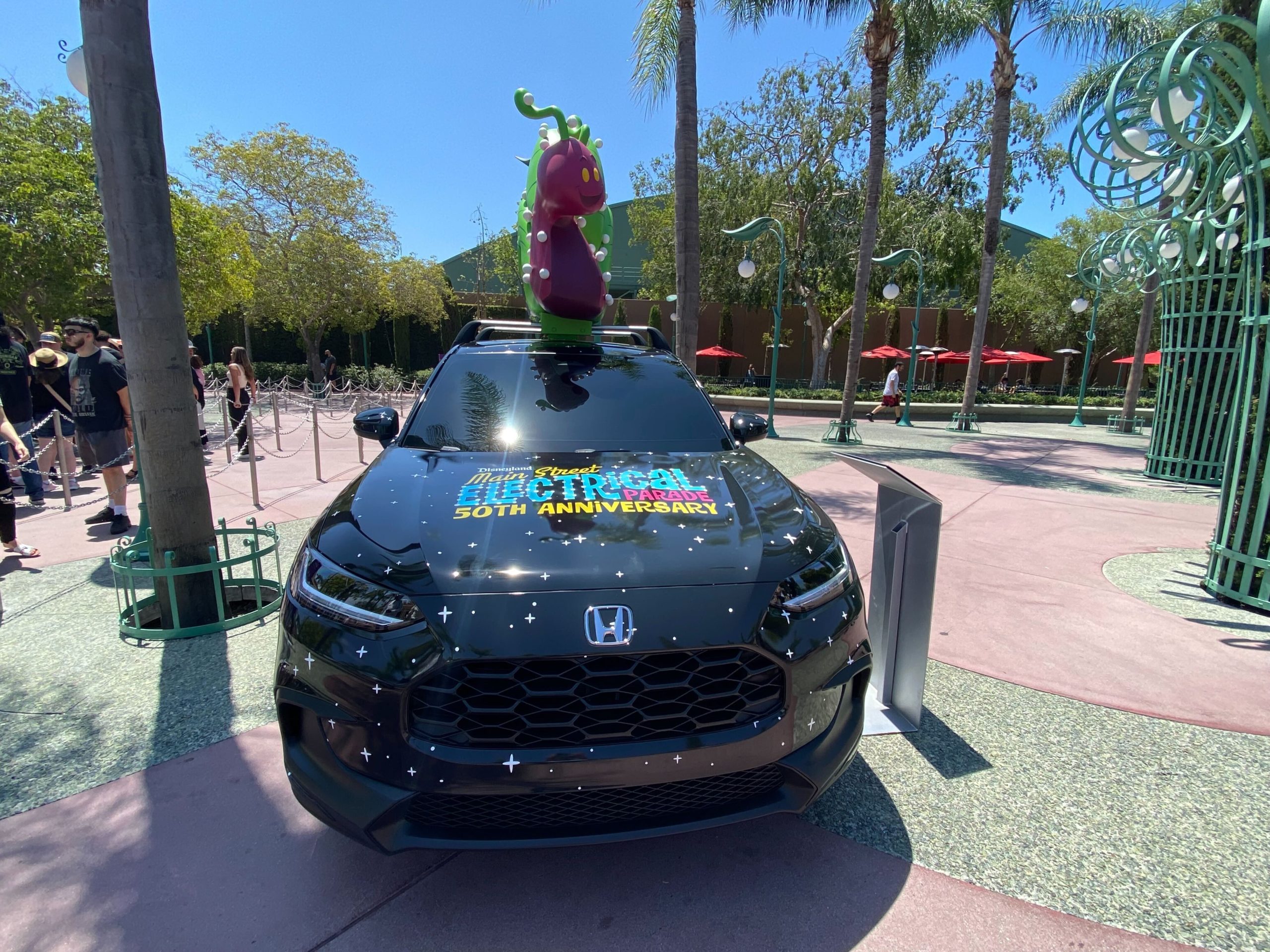 Any number of things both temporary and permanent have called the Disneyland Esplanade home over the years, and the latest temporary addition is a new Honda HR-V wrapped to celebrate the 50th anniversary of the Main Street Electrical Parade, set to glow away yet again September 1.