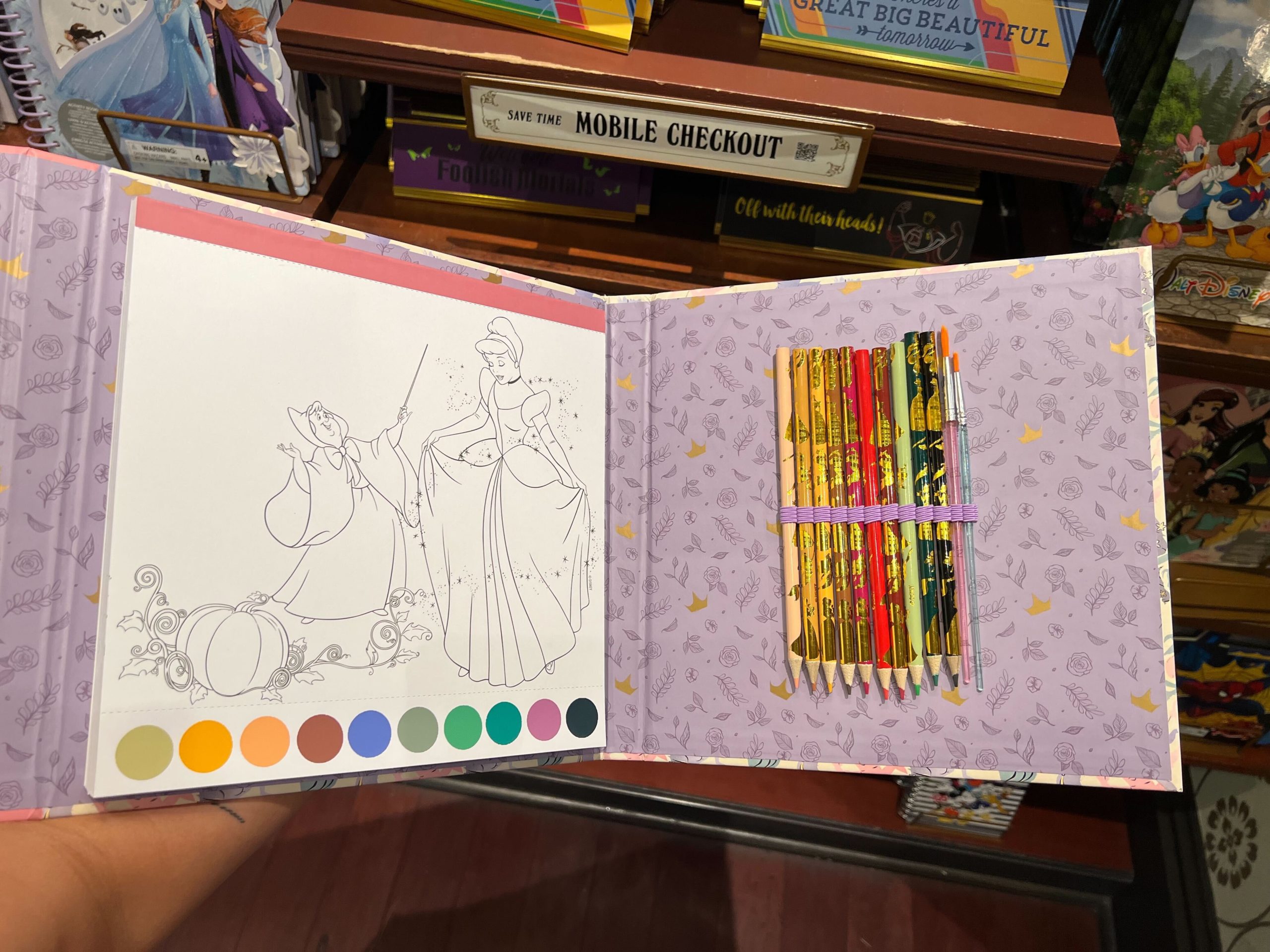 The ink dots are on the bottom of the pages, which each feature a different Disney Princess.