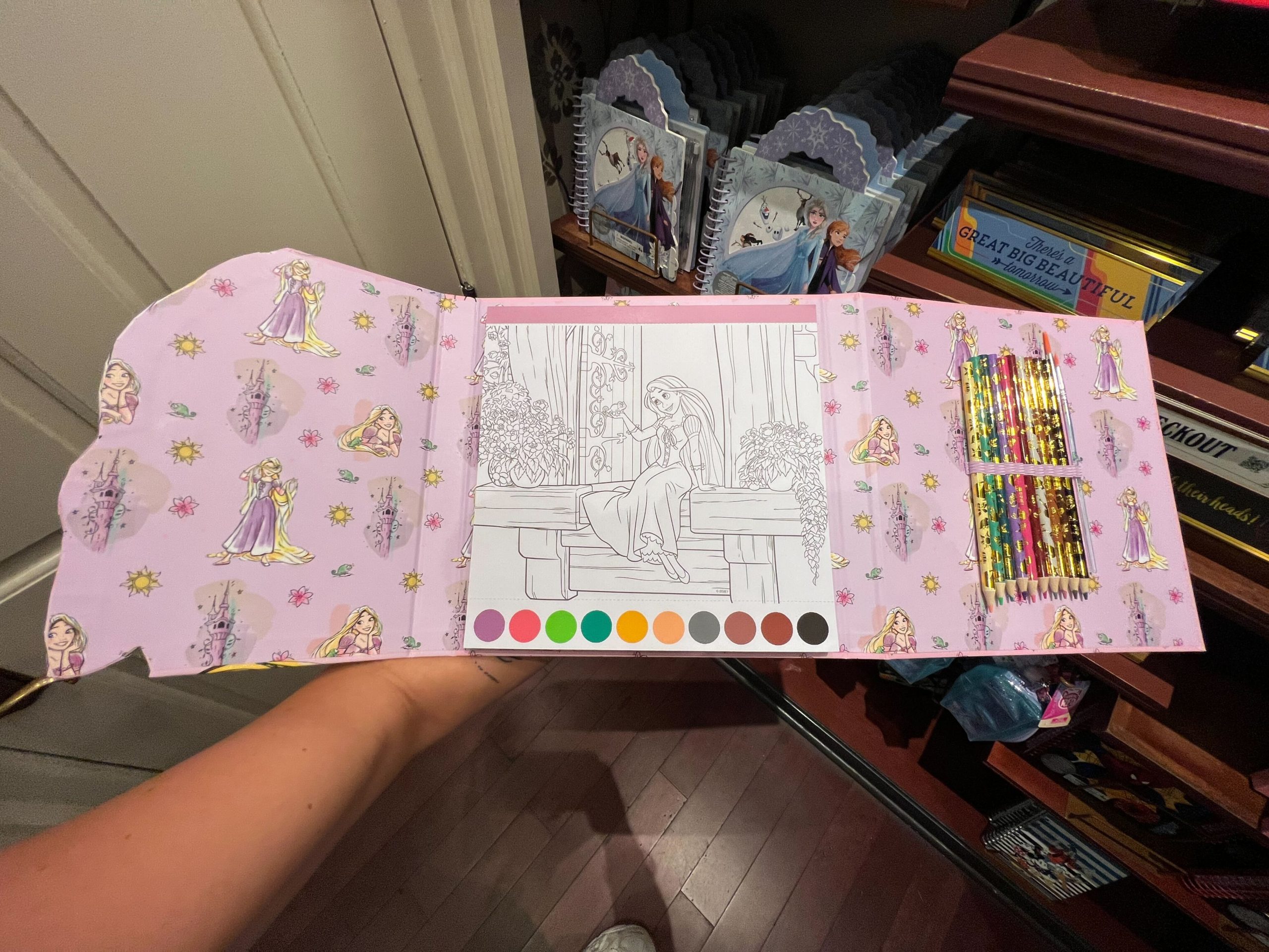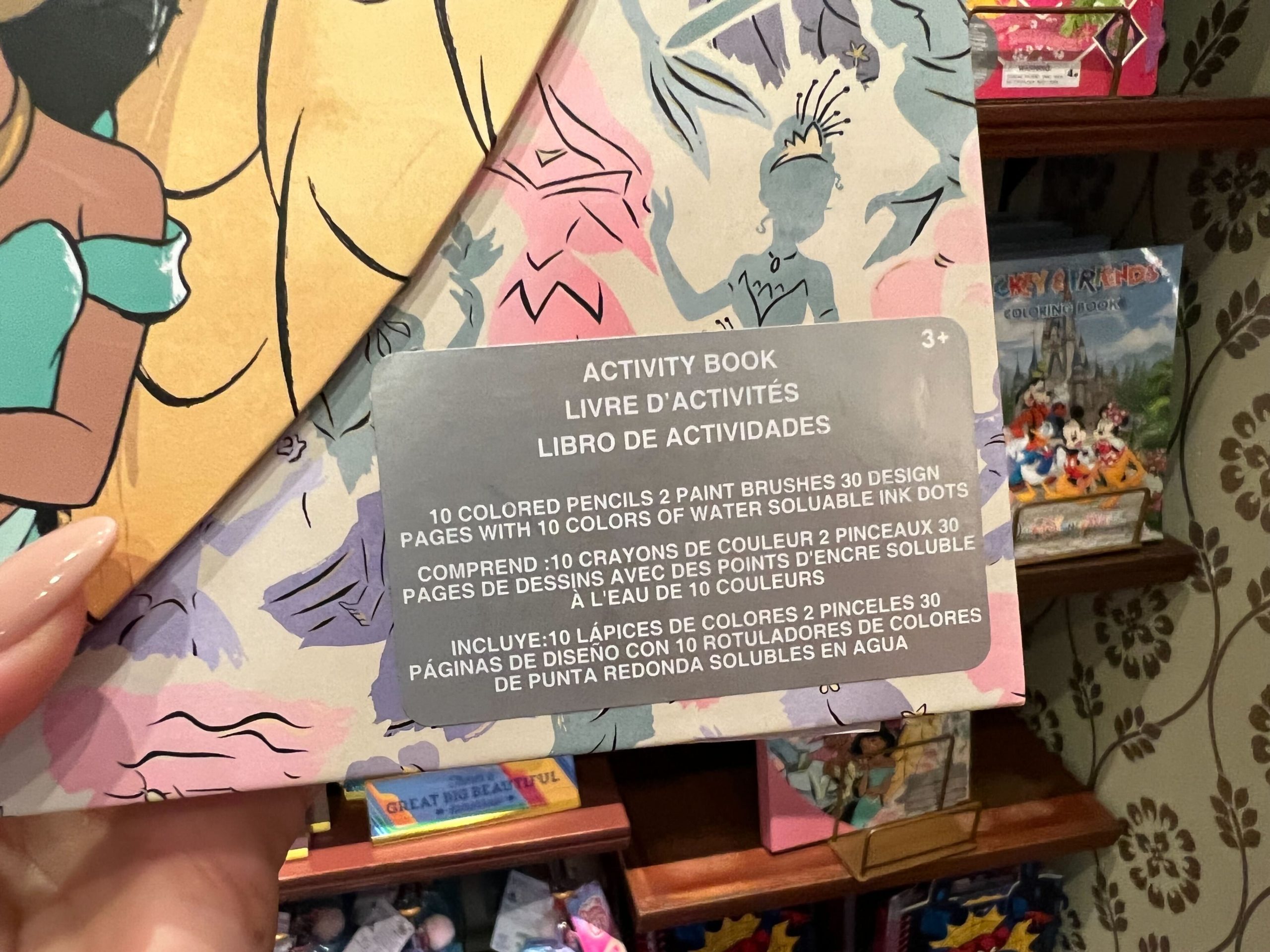 There are multiple new activity books featuring different characters. This one has Princesses Jasmine, Tiana, Cinderella, Ariel, Mulan, and Belle on the cover.