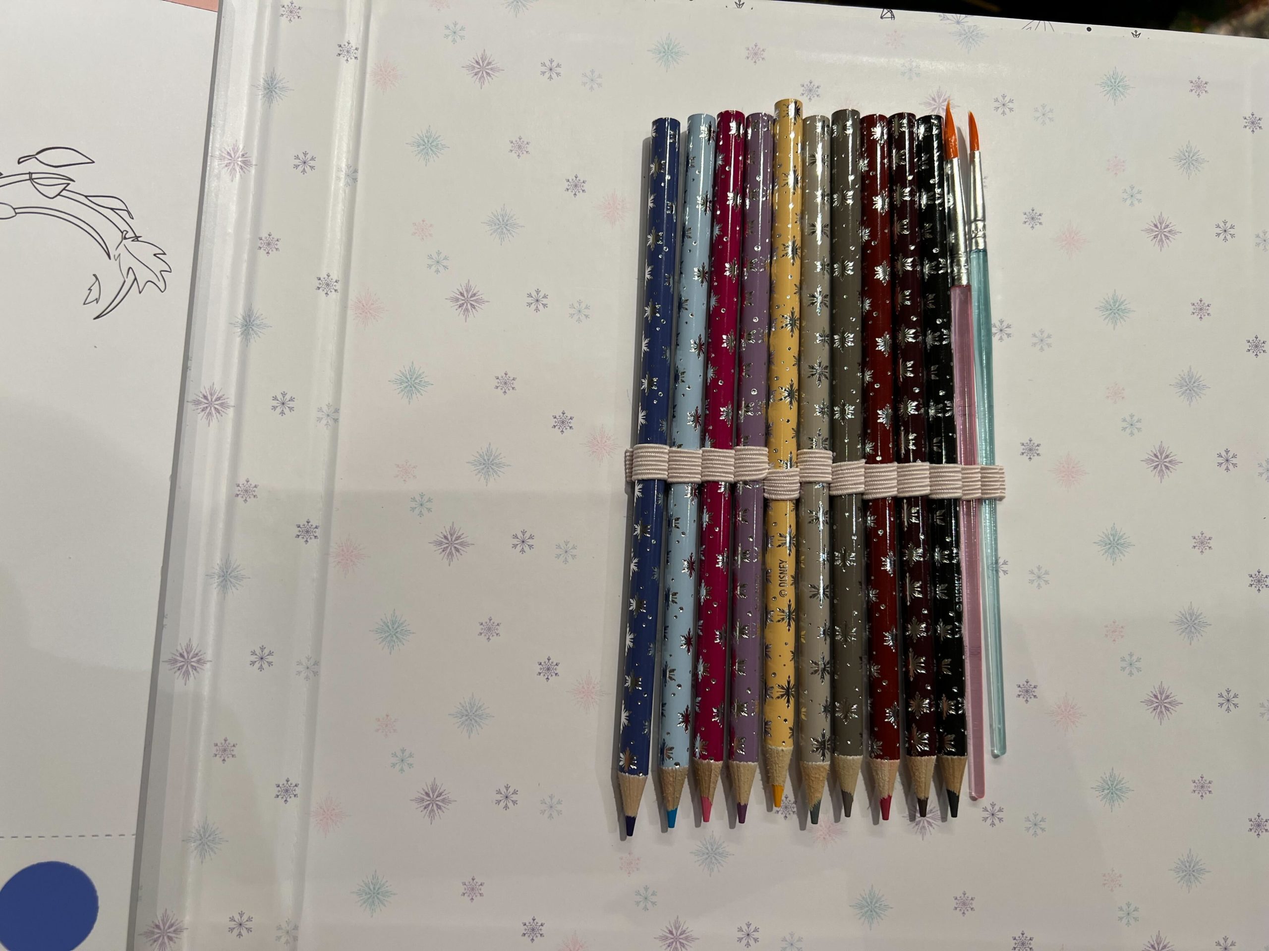 These also have ten water-soluble ink dots, ten colored pencils, and two paint brushes.