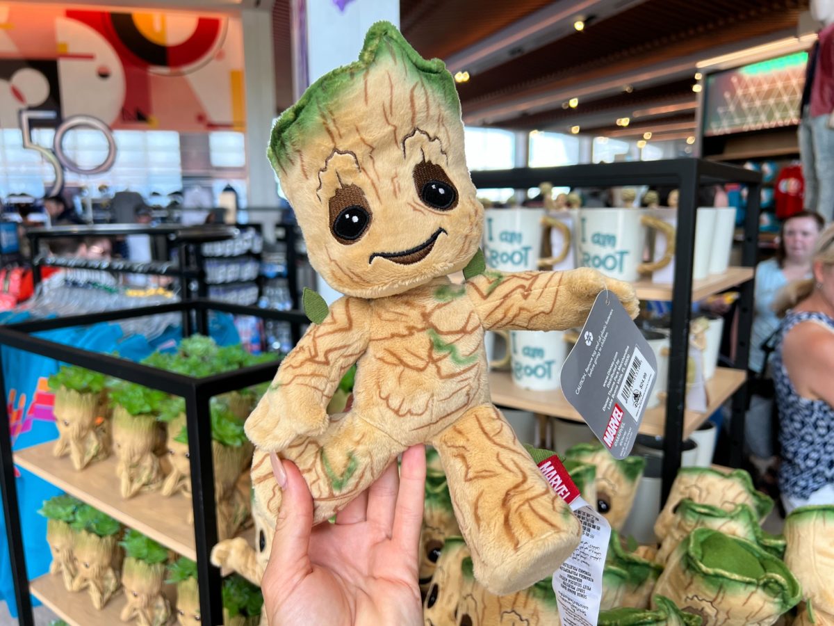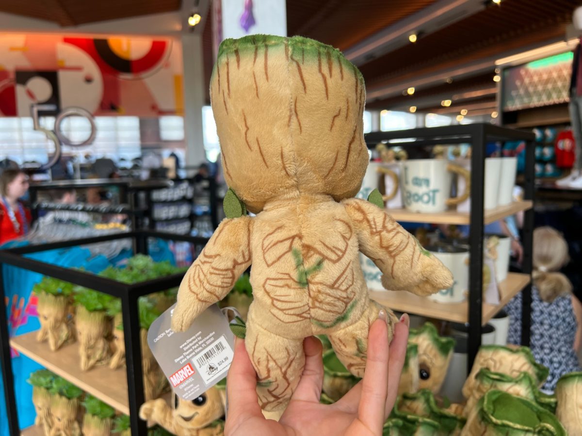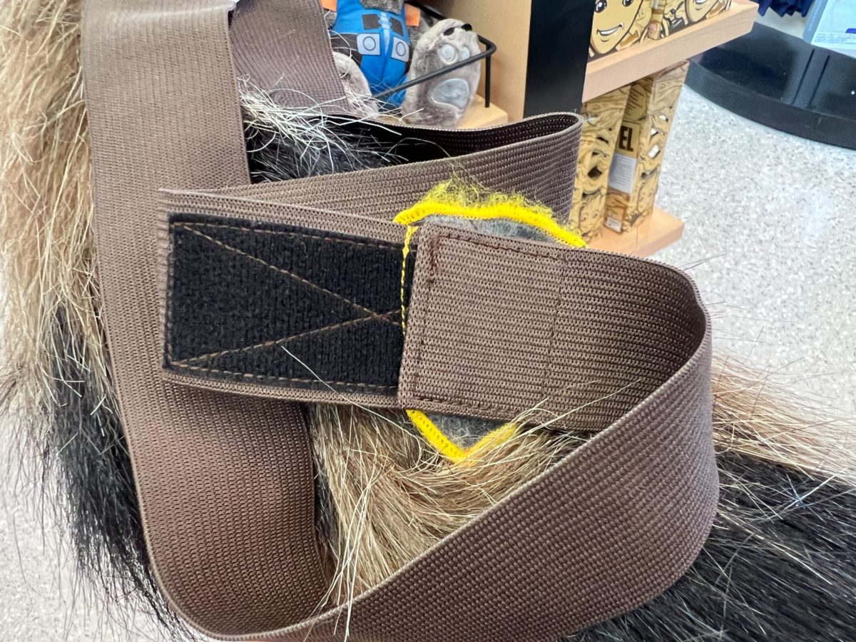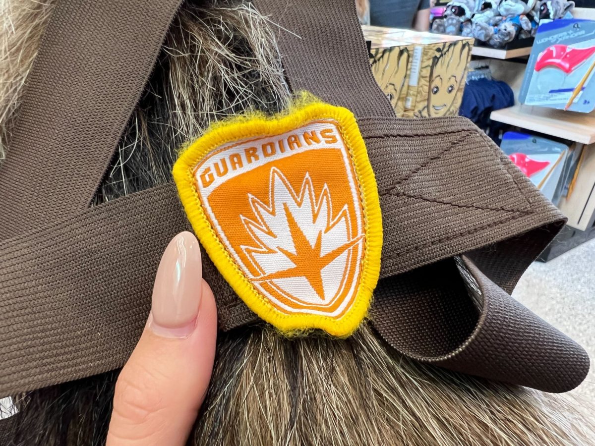 The strap has velcro behind the patch. This and the Groot plush below were in Creations Shop.