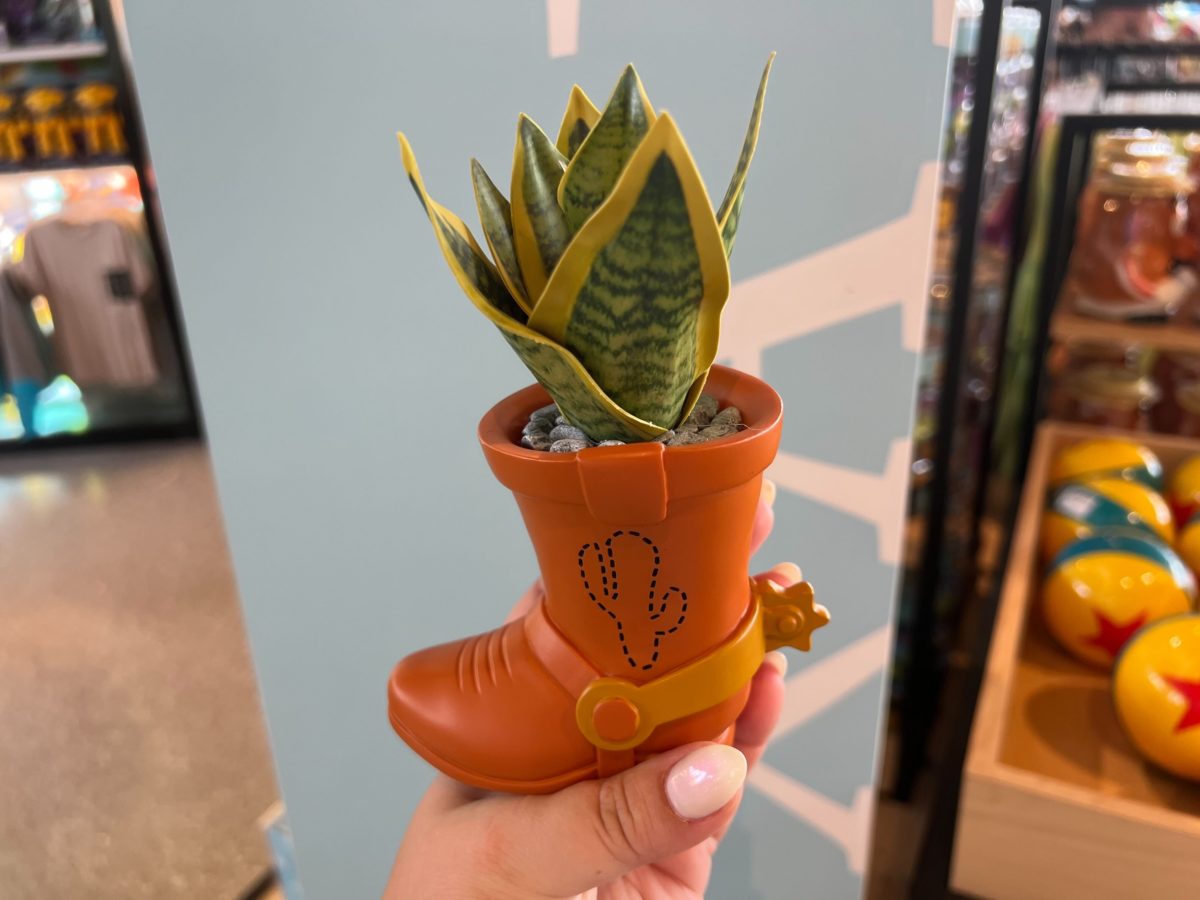 Instead of a pot, this decorative succulent sits in Woody’s brown boot, complete with a cactus outline on the side and a golden spur on the back. Don’t worry; it’s all plastic, so the spur isn’t sharp.