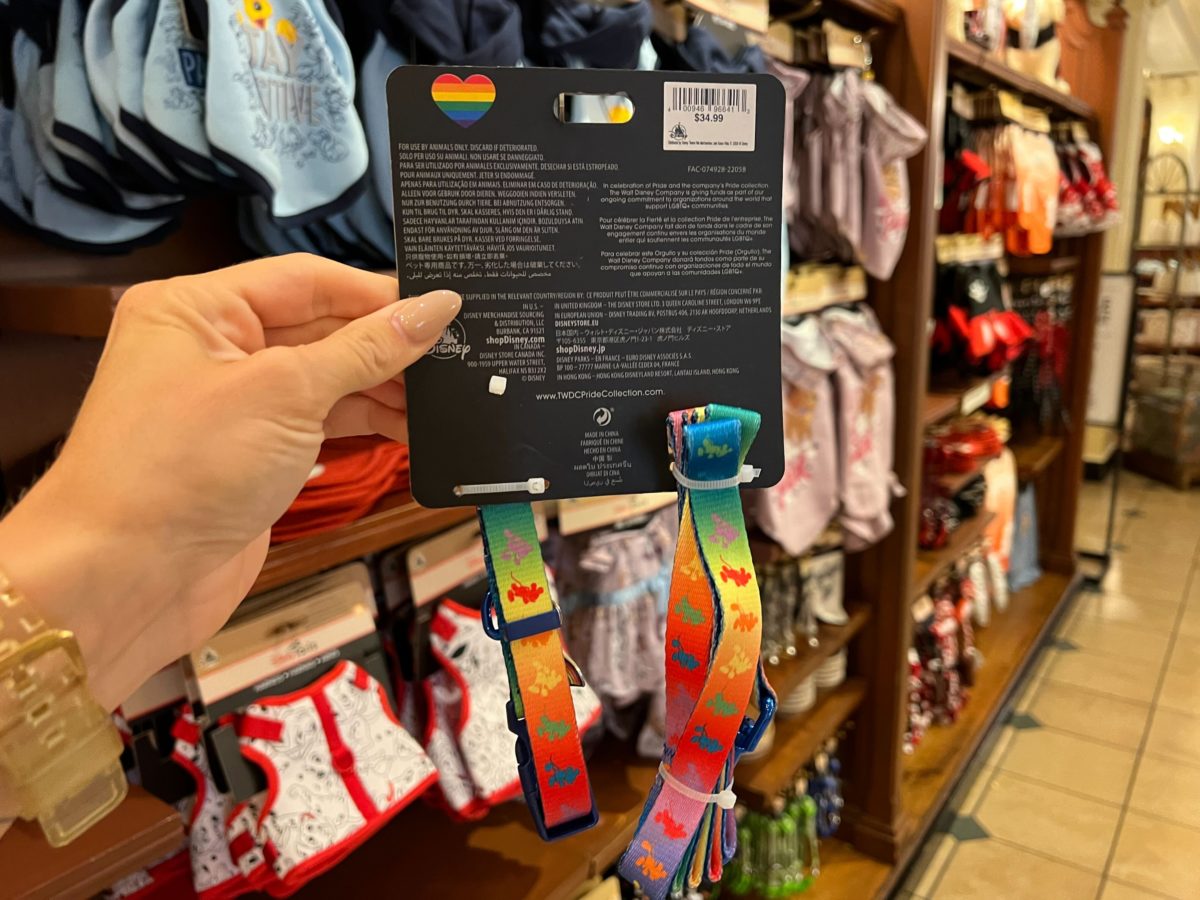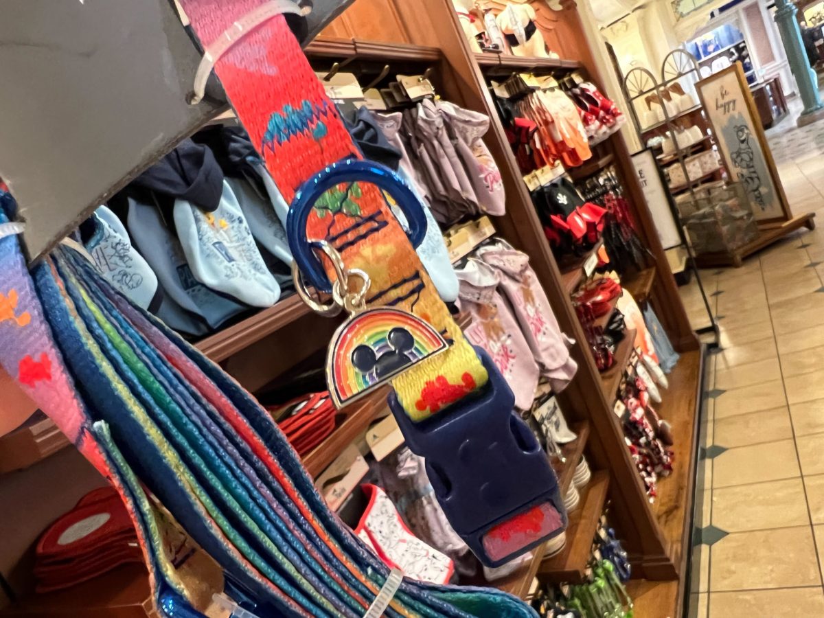 There’s a rainbow charm with a Mickey head on the collar. We found this at the Emporium and in World of Disney at Disney Springs.