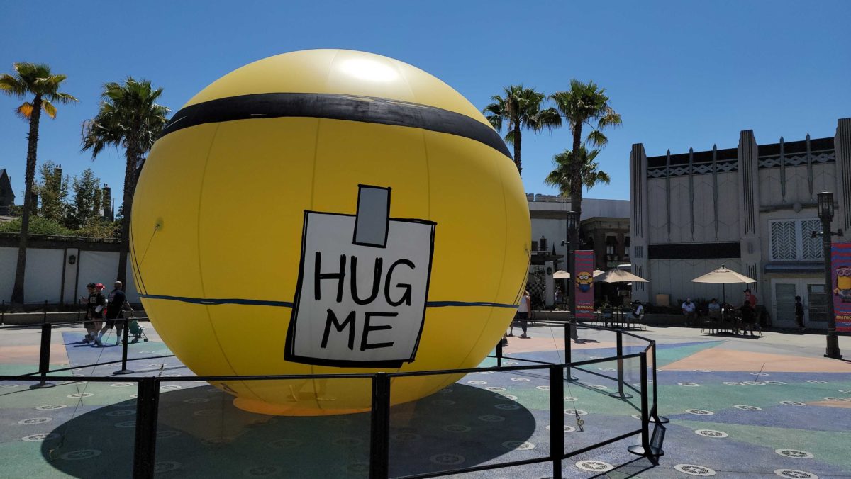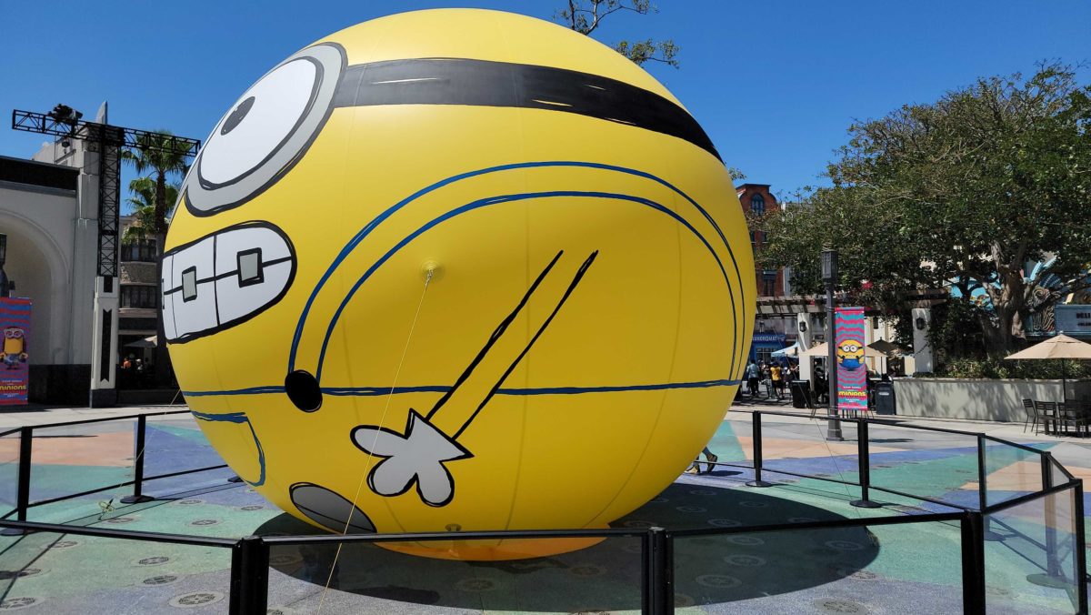 A giant inflatable Minion ball is now sitting in Universal Plaza.