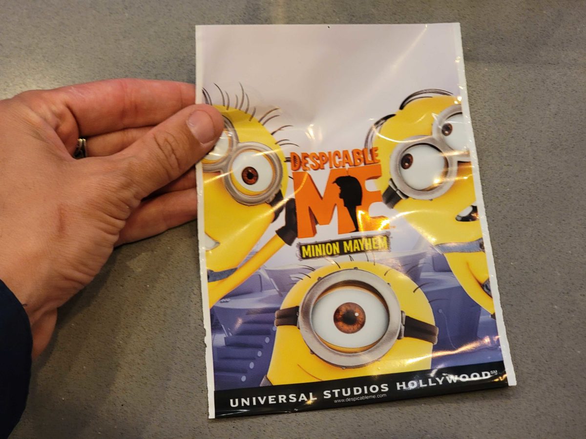 They are branded for the ride and feature three Minions peeking out from the sides. It’s a small bag, but perfect for keychains, pins, or other small souvenirs.