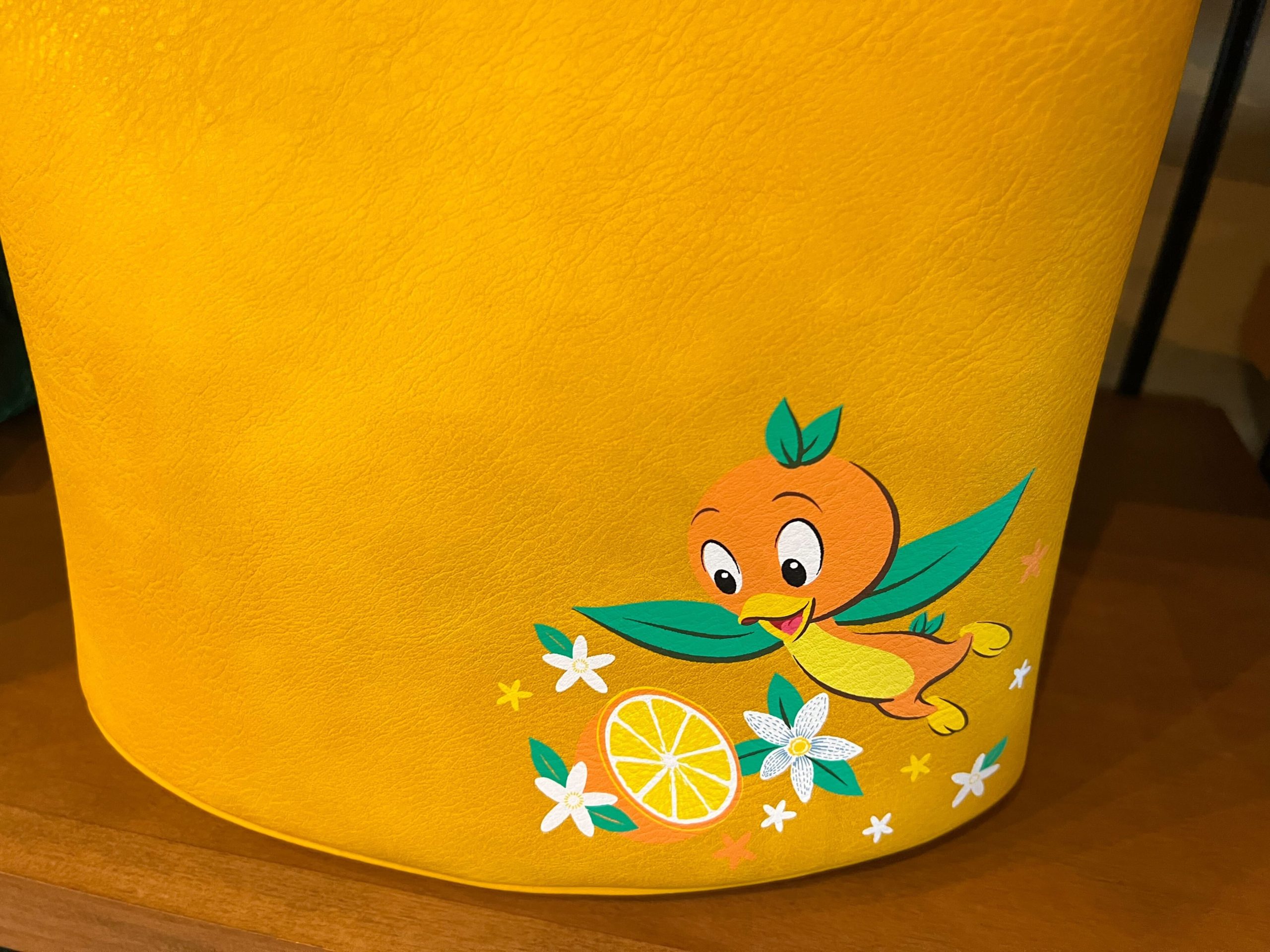 The inside features orange blossom designs, orange halves, and of course Orange Bird himself soaring above.