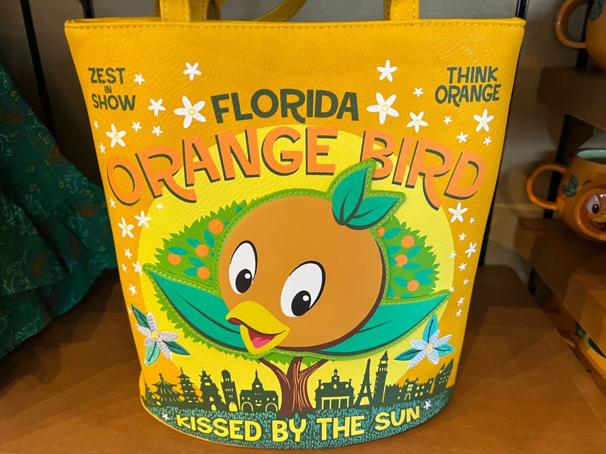 If you just can’t get enough of the Orange Bird already, he’s made his latest appearance on a new Loungefly tote bag we found at EPCOT!