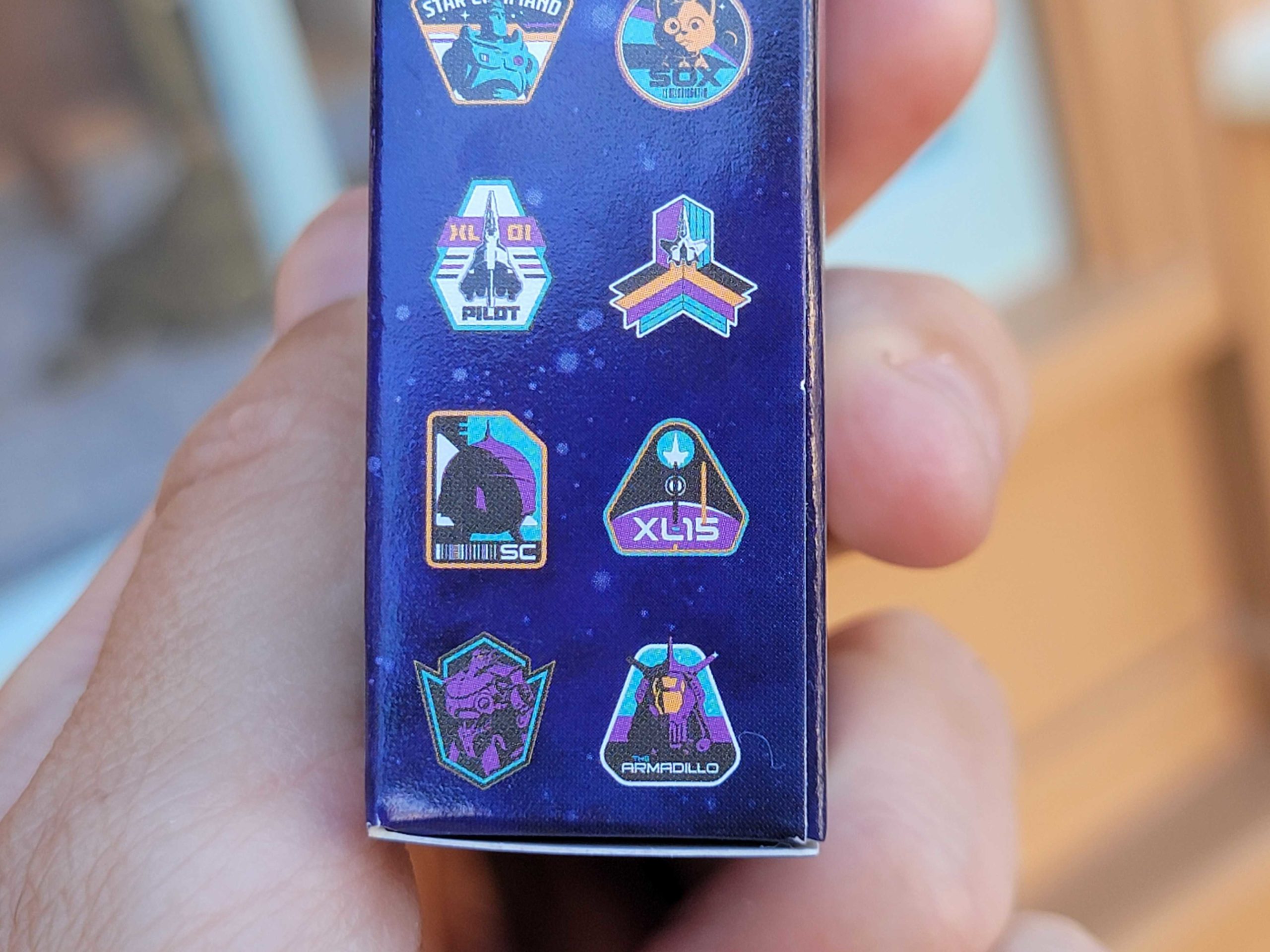 Each pin resembles a different spacey logo or patch from “Lightyear.”