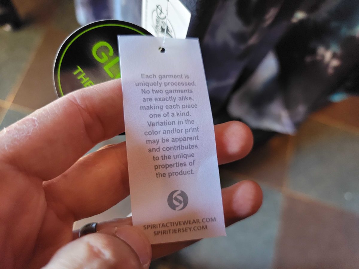 As the tag says, each garment has a unique tie-dye pattern.