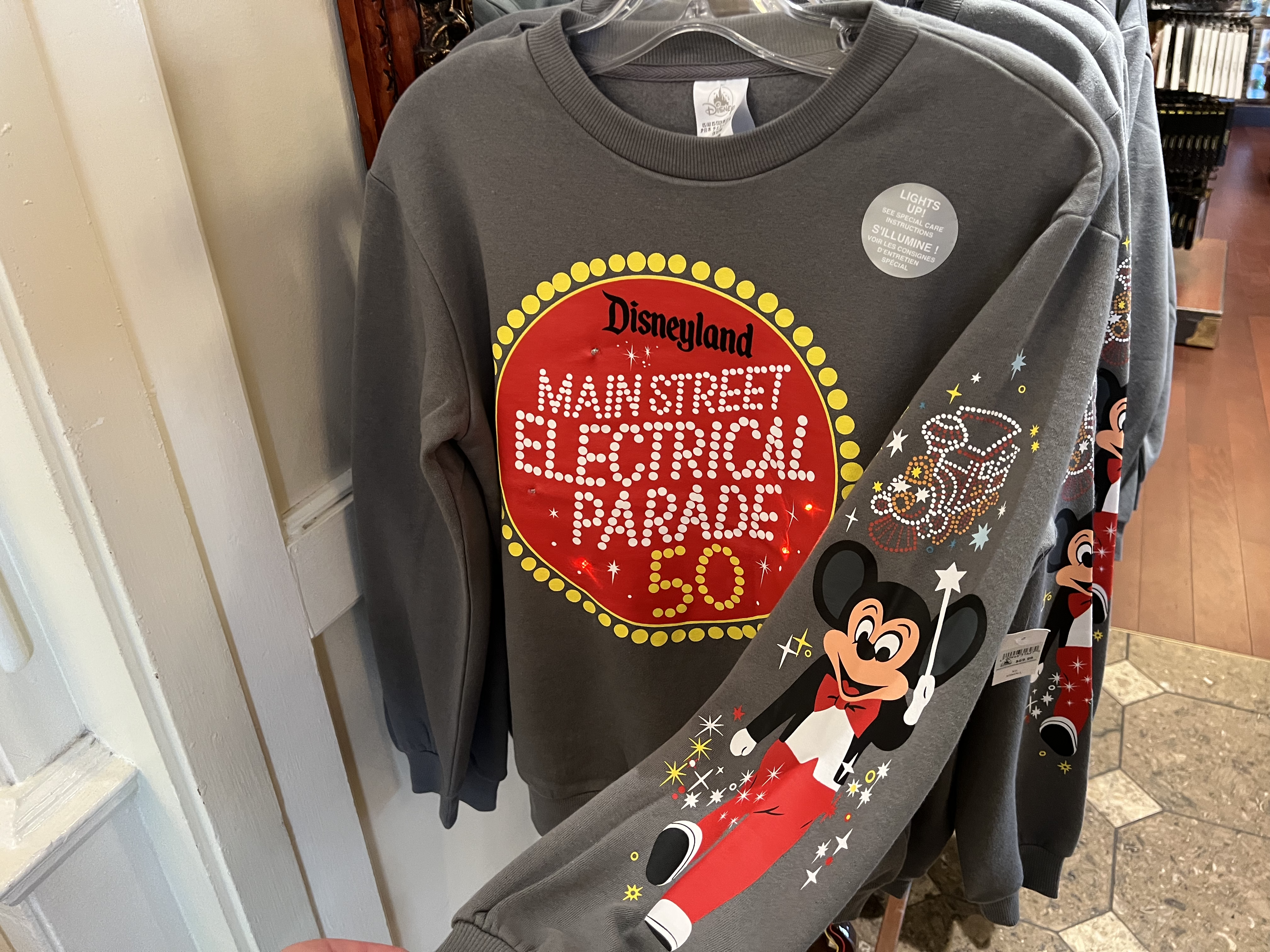 A Light-Up Main Street Electrical Parade Sweater made its way to the Emporium. The lights flicker in a colorful pattern.