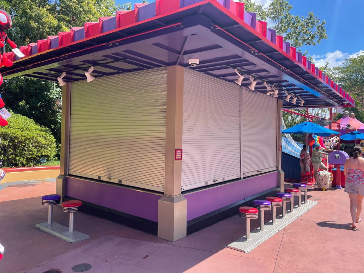 Construction walls have gone up in Marvel, blocking off the Fruit stand, Chomp Hot Dogs, and the entrance to the Spider-Man meet and greet.