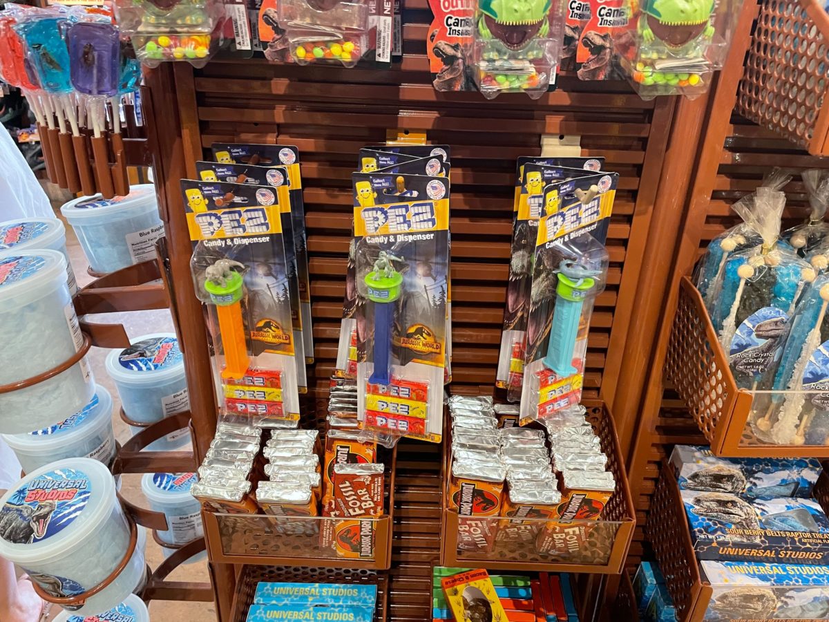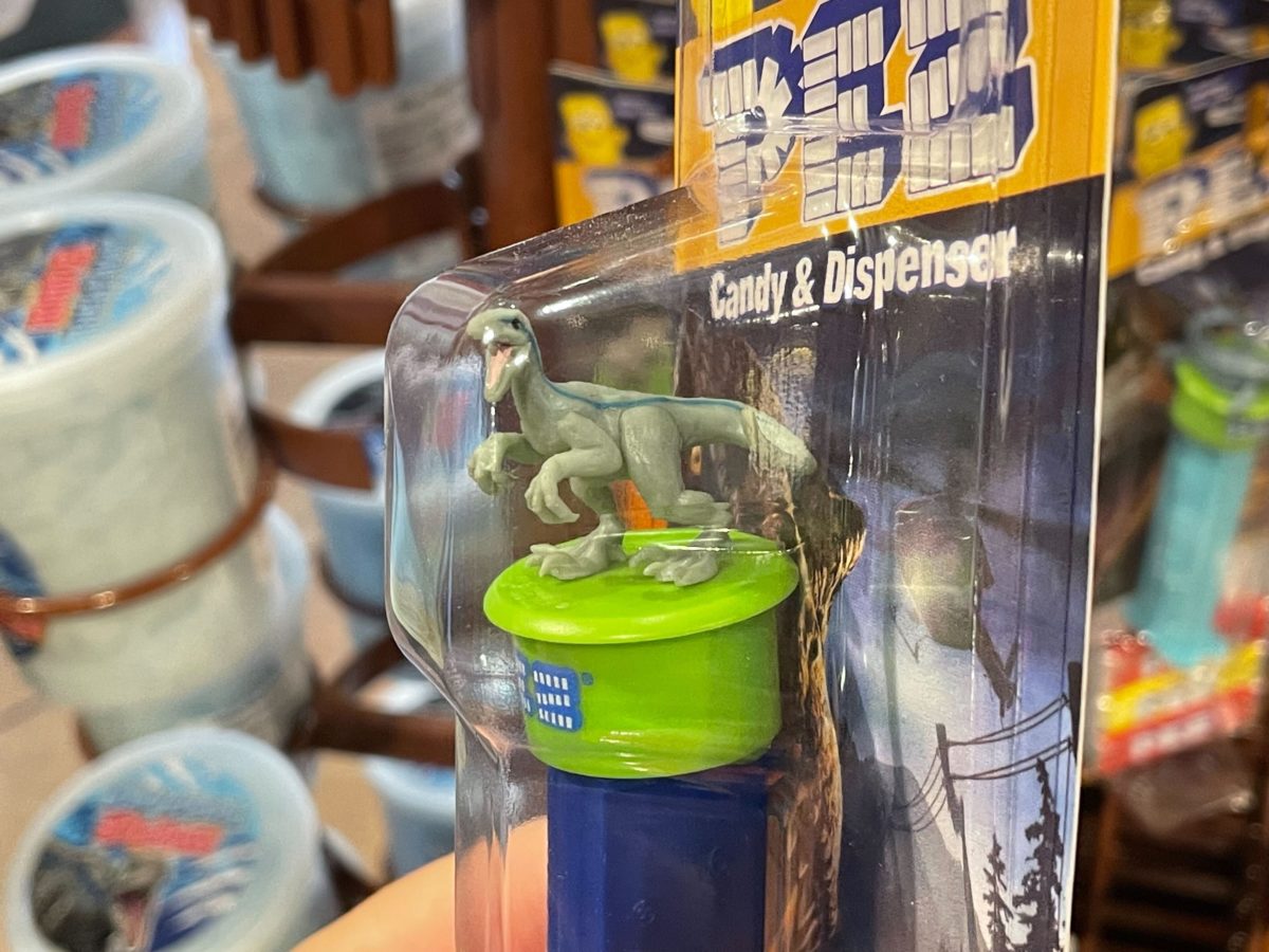 Jurassic World PEZ dispensers are available in Jurassic Outfitters. They’re $3.95 each and come with a Triceratops, T-Rex, Mosasaurus, and Blue the raptor.