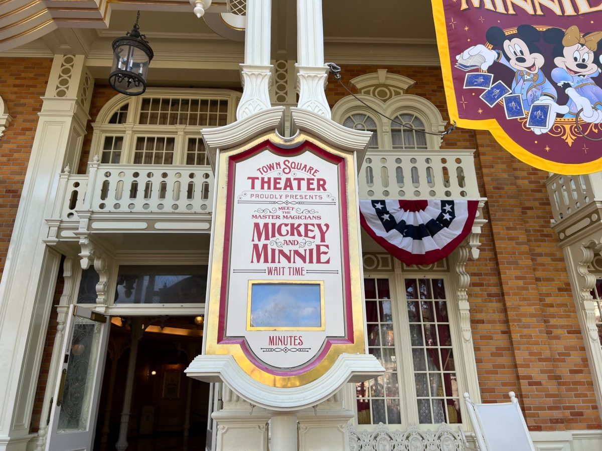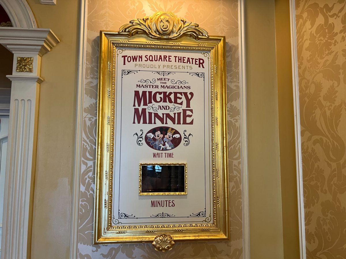 Minnie Mouse has joined Mickey at Town Square Theater in Magic Kingdom to greet guests in her 50th anniversary costume. This is the first time in years that the couple has met together at Magic Kingdom. This is also the only place most guests can meet them in their 50th anniversary costumes — they do appear separately in their 50th anniversary costumes at the Disney Visa Card Character Experience in EPCOT.