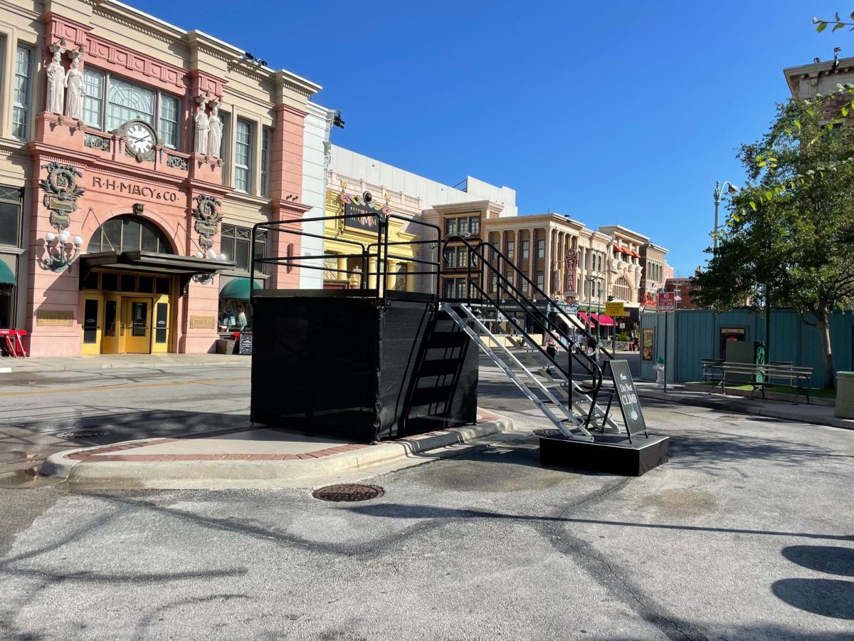 A small stage has been erected in the New York section of Universal Studios Florida for a Halloween Horror Nights 31 scare zone.