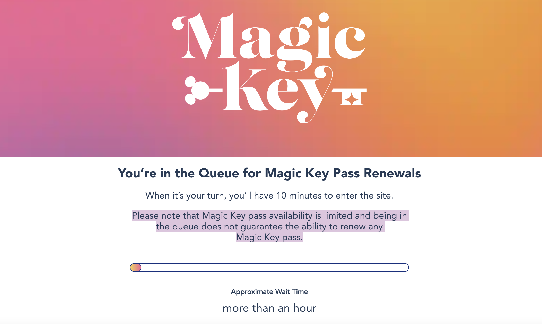 - Disneyland Resort Magic Key Holders could finally join a virtual queue to renew their Magic Key passes, but Disney noted that renewals were not guaranteed for current Key holders.