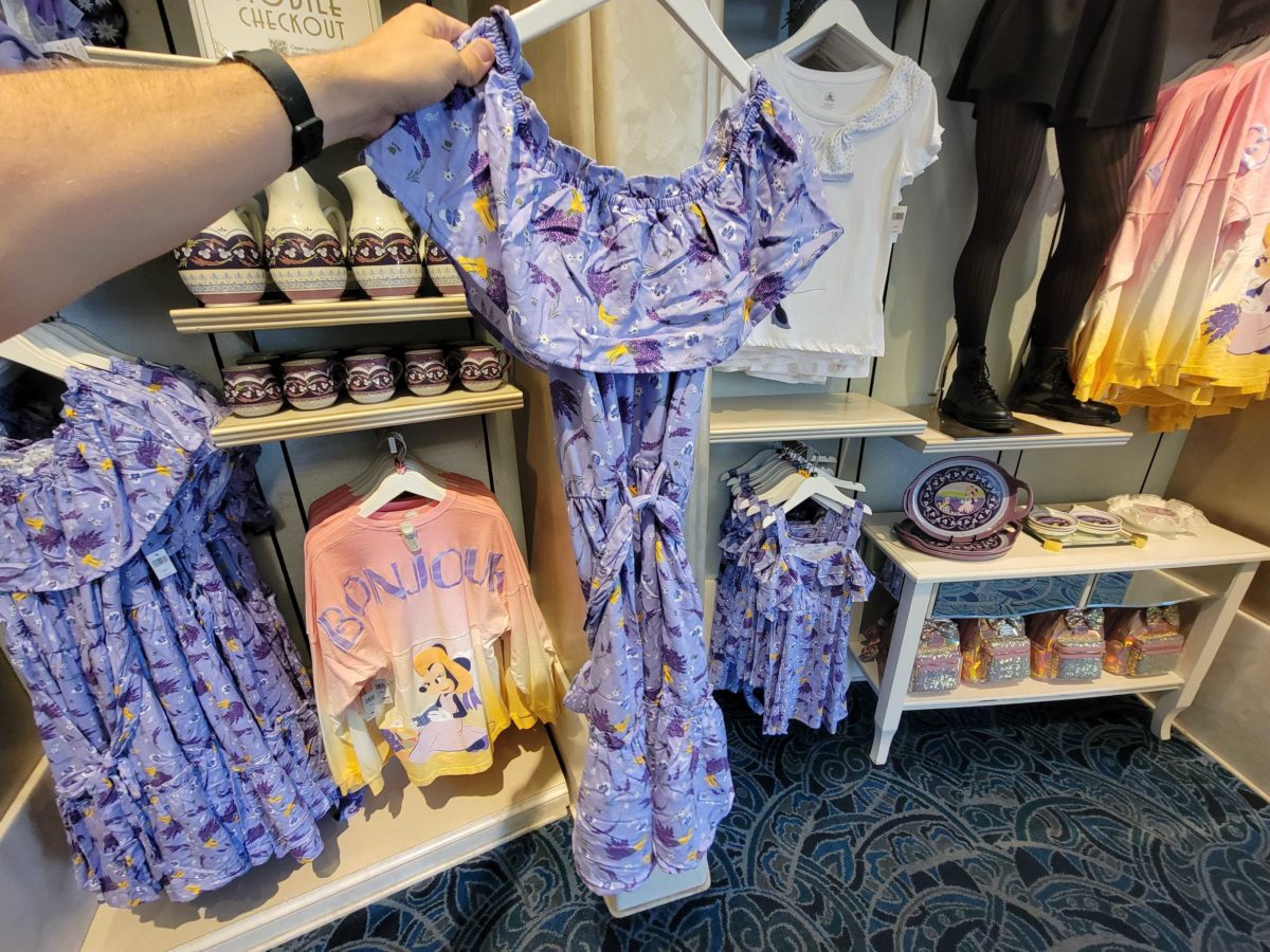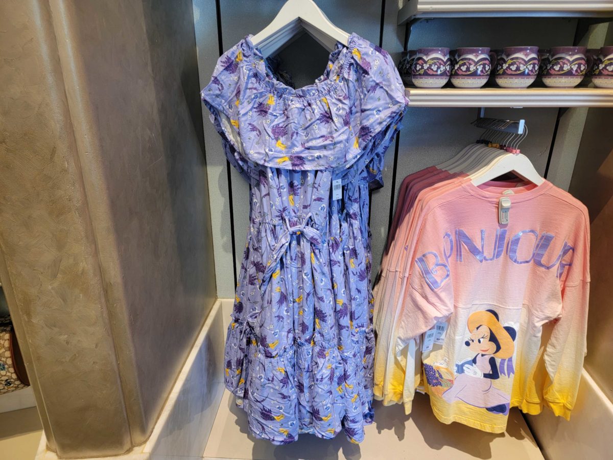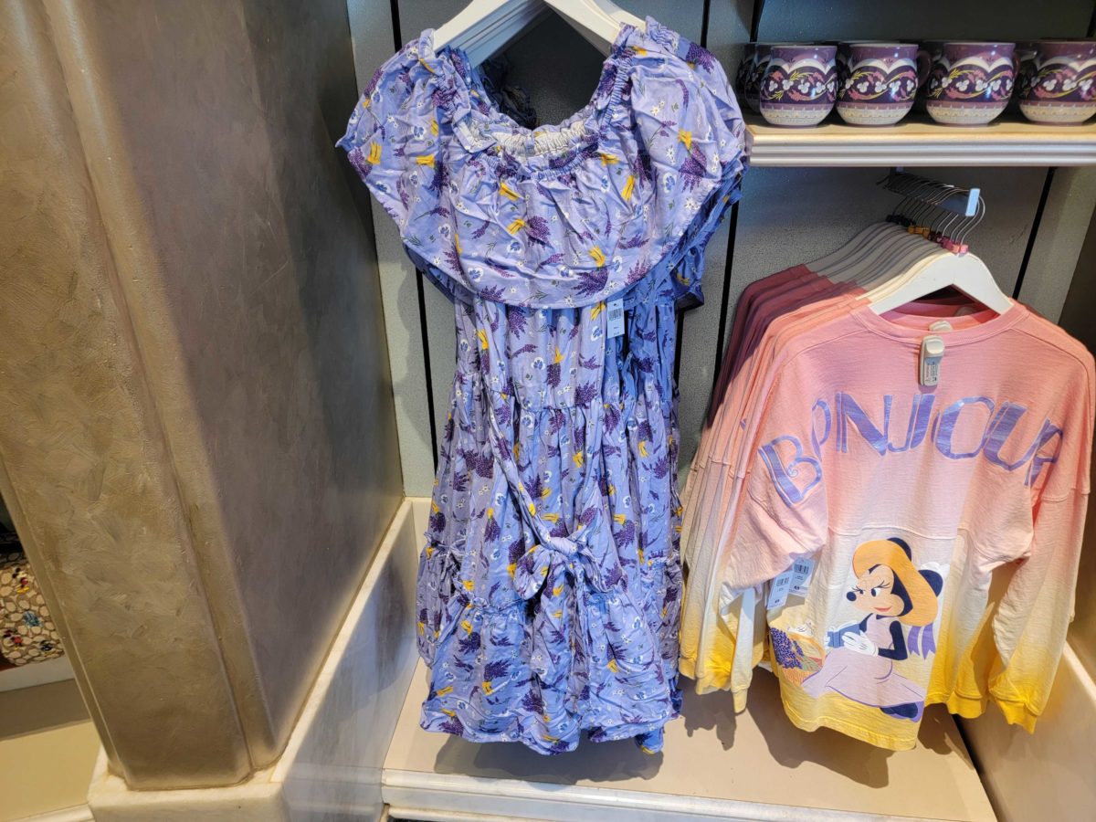 More of the French lavender Minnie Mouse merchandise collection has sprouted up in Disneyland Resort. This new mug, adult dress, and magnet are available in Elias & Co. at Disney California Adventure.
