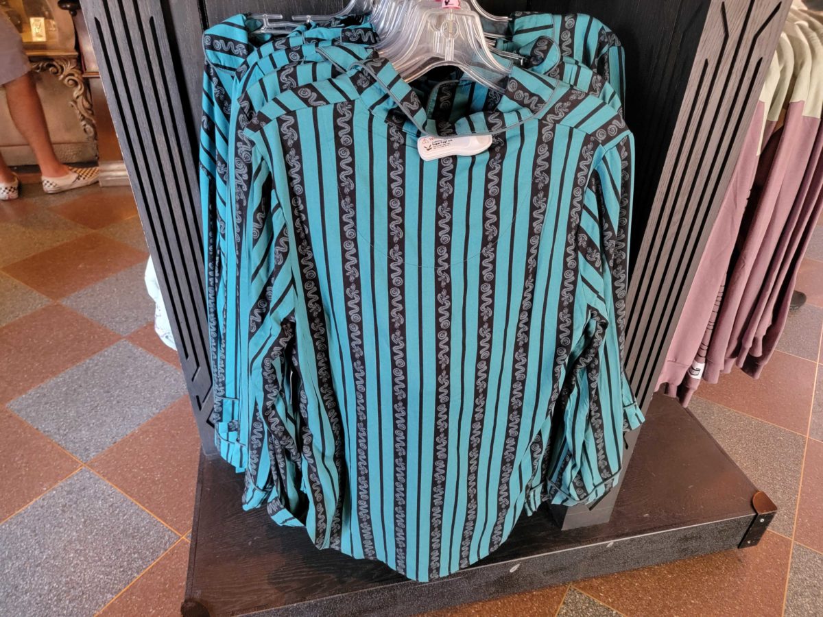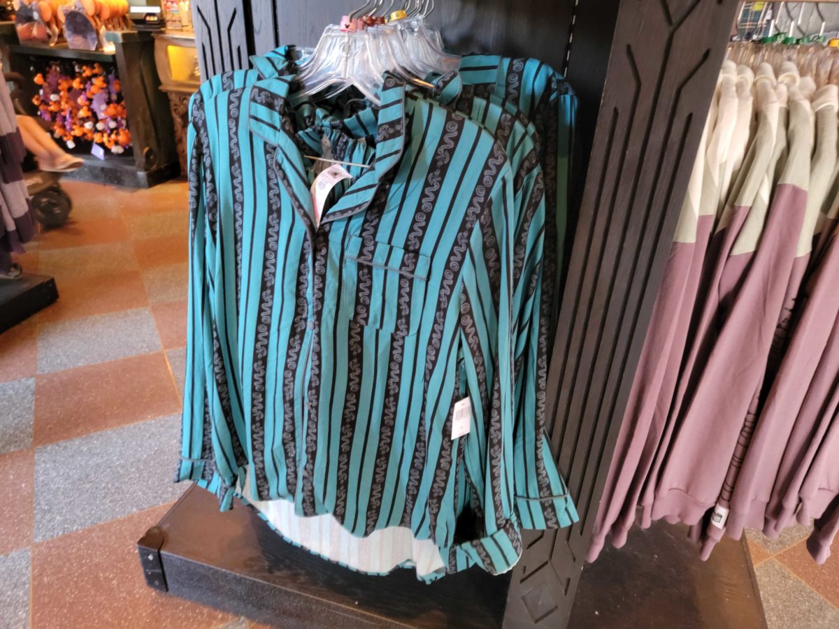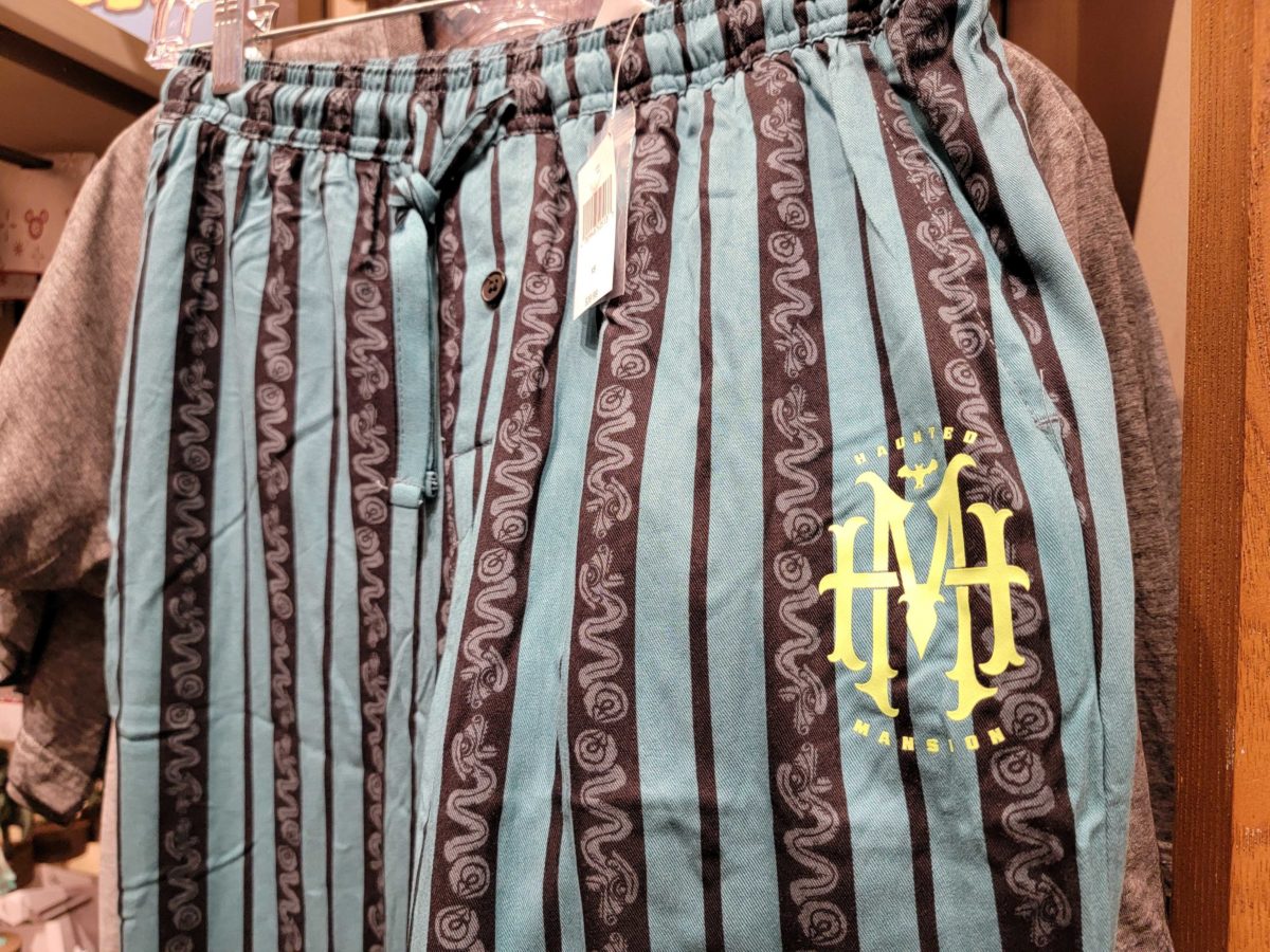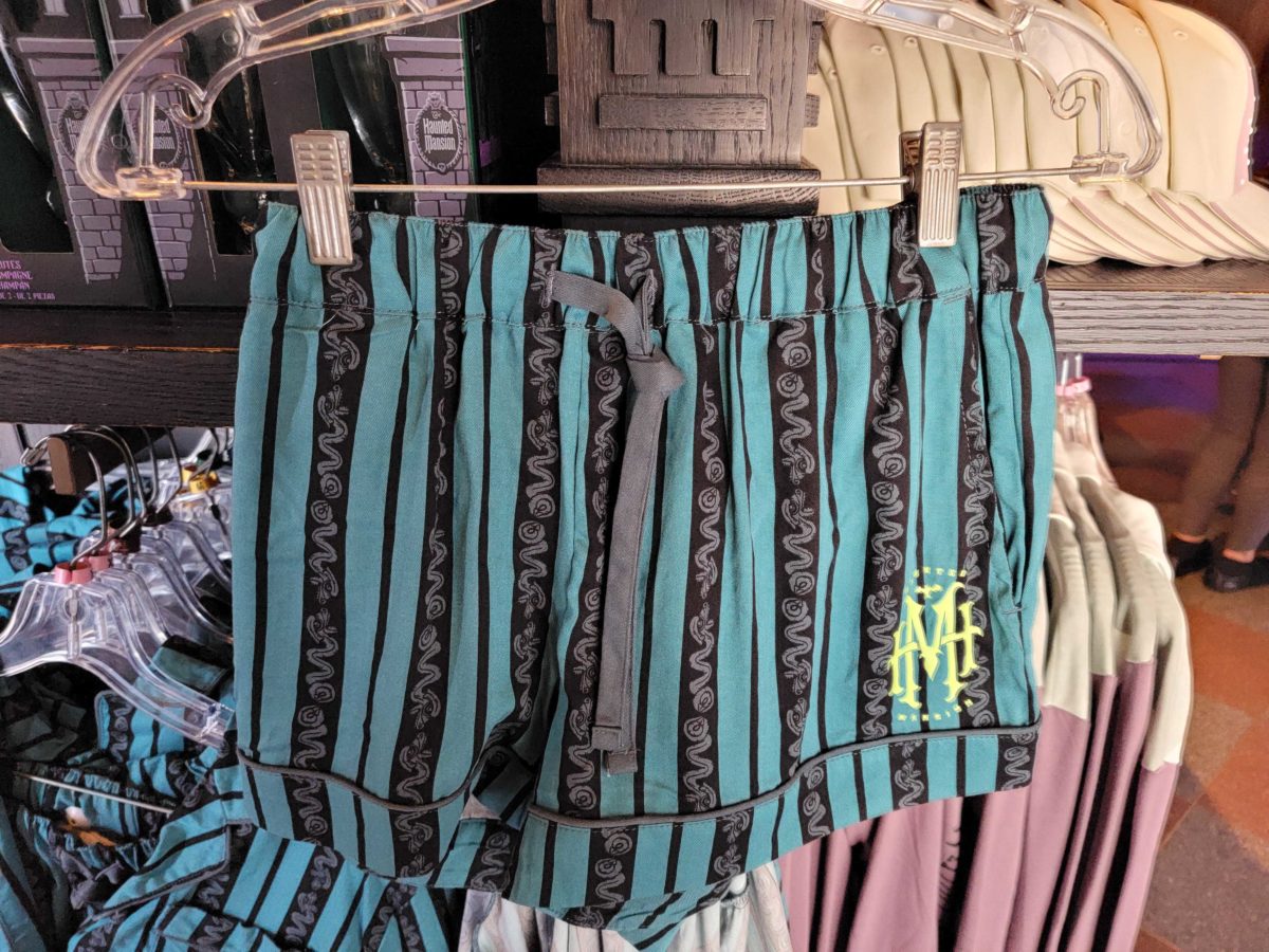 This pajama set includes a button-up top and shorts. They are inspired by the green and black striped uniforms worn by Haunted Mansion Cast Members.