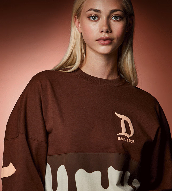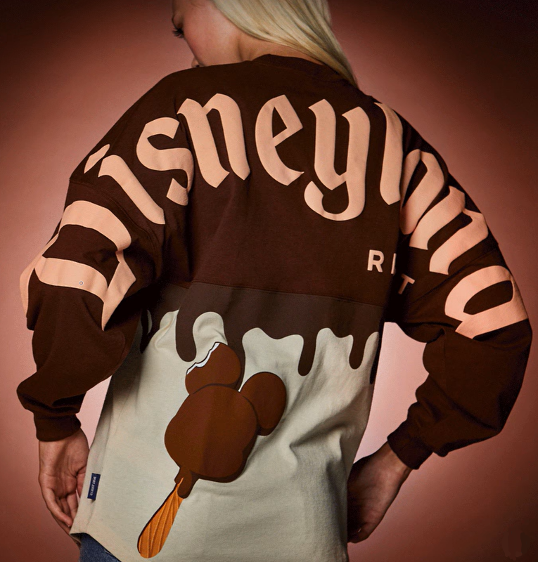 shopDisney UK previewed two of the new items on their Instagram account. The Spirit Jersey will be primarily brown with white ice cream on the bottom. The “chocolate” drip extends down the torso.