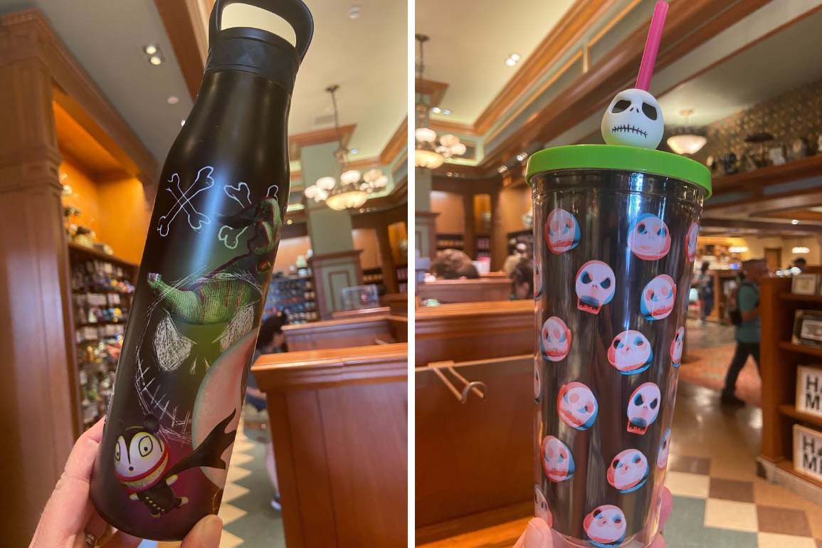 There are only 85 days until Halloween, but Disneyland Resort has you covered with a new Nightmare Before Christmas water bottle and tumbler. We picked these up at Julius Katz & Sons at Disney California Adventure.