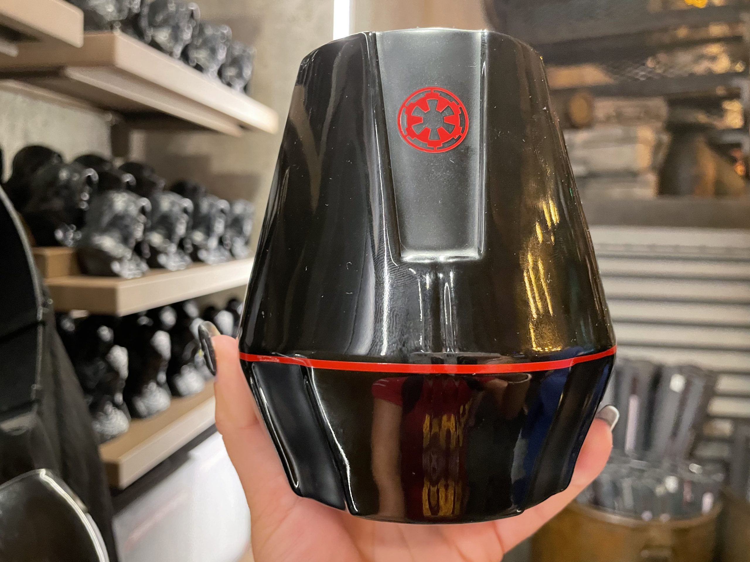 We hope the force is strong with you because the mug has no handle. This new First Order mug can be found tucked on the shelves at Dok Ondar’s Den of Antiquities.
