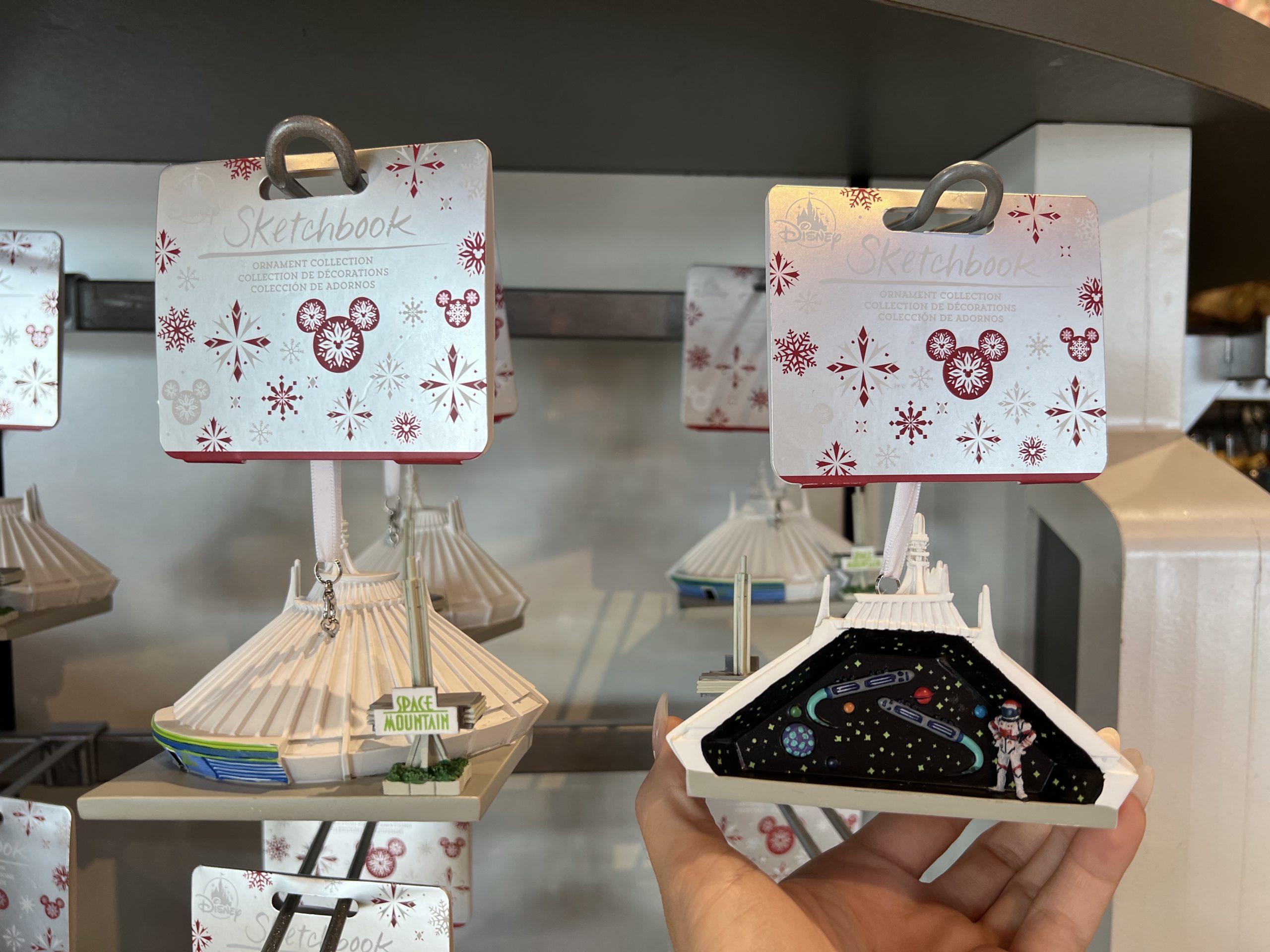 We love these attraction ornaments! Space Mountain Sketchbook ornaments are back in stock at Star Traders.