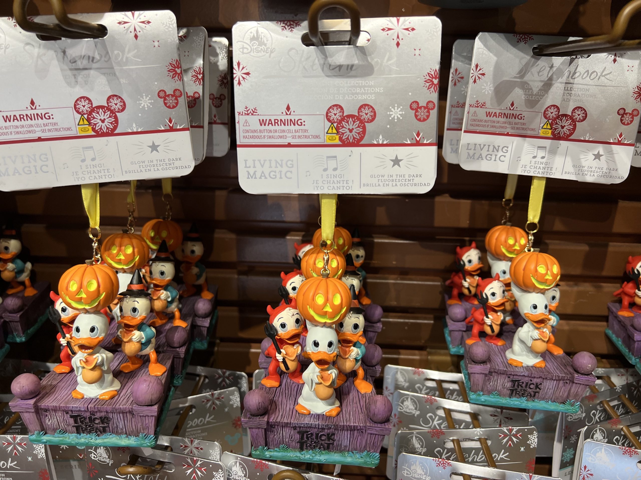 Trick-or-Treat! These adorable new Huey, Dewey, & Louie Halloween ornaments at Ye Olde Christmas Shoppe are the perfect addition to your Christmas tree. They even sing “Trick-or-Treat for Halloween”.