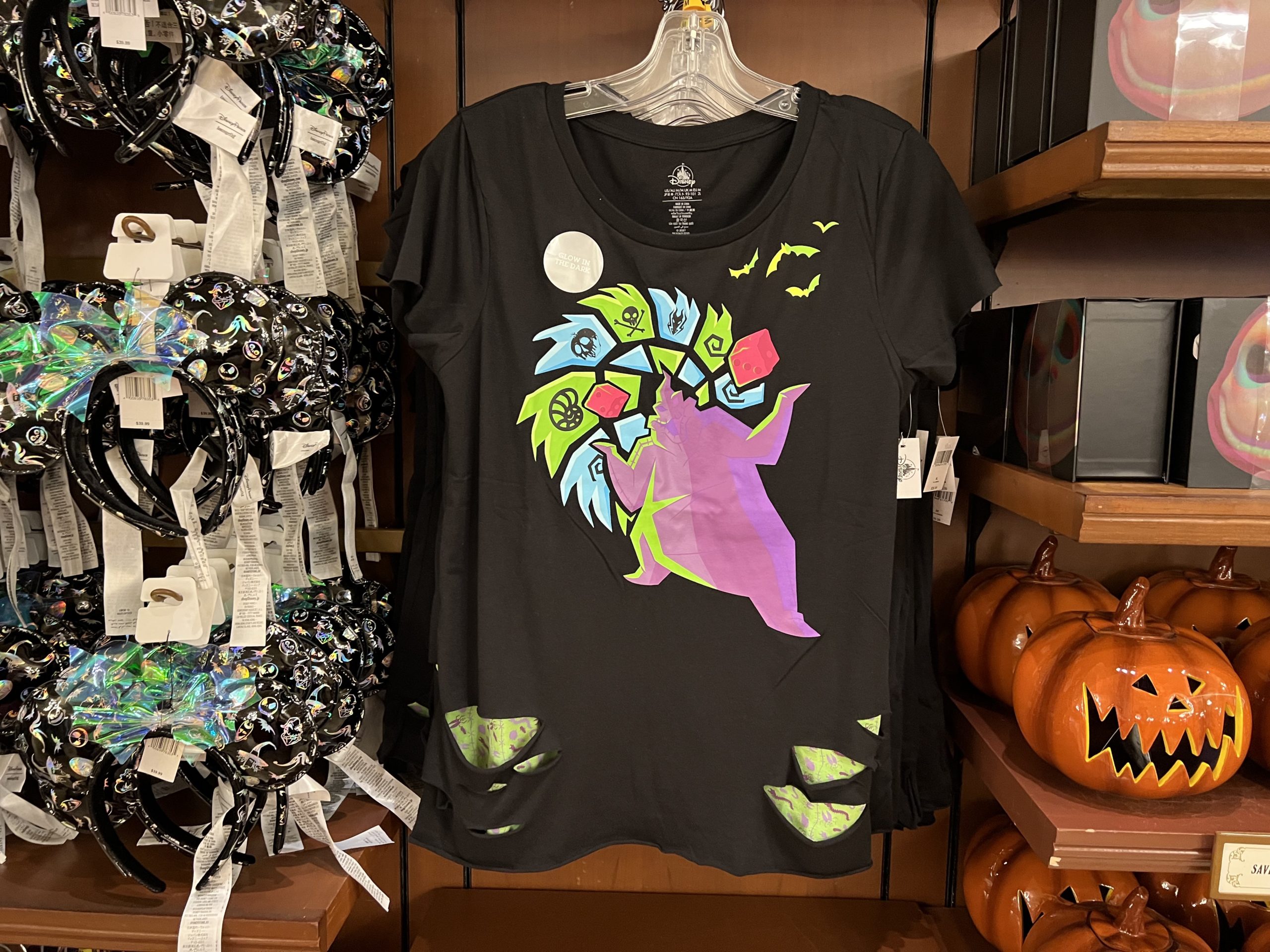 Oogie Boogie and the Sanderson Sisters have new ripped shirts at the Emporium that reveal bugs and spiderwebs underneath.