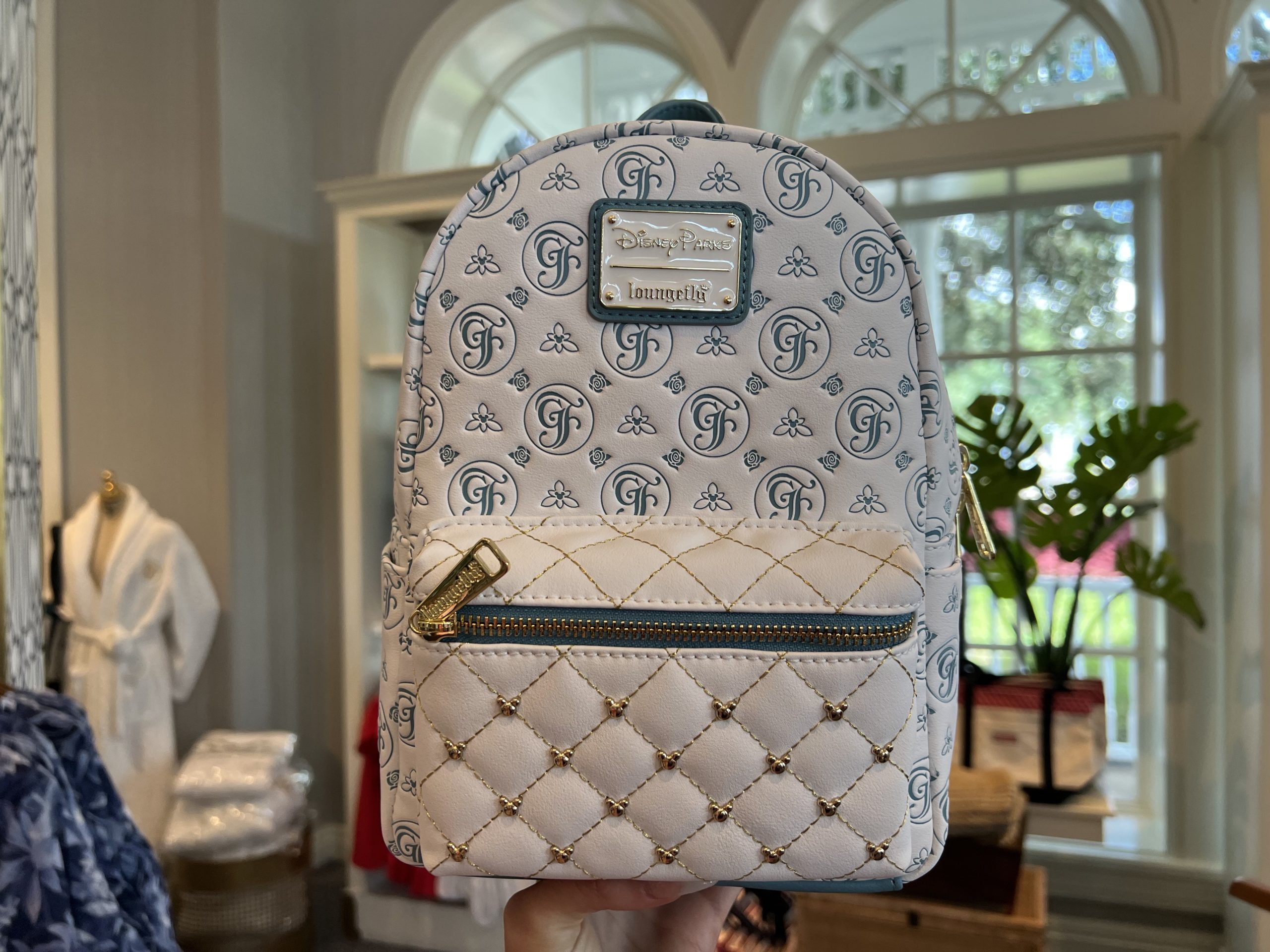 This stunning new Loungefly is available at Disney’s Grand Floridian Resort and Spa at Curiouser Clothiers. It’s stamped with the resort logo and features some gold Mickey ears along the bottom part of the bag. It it a must-have for you?