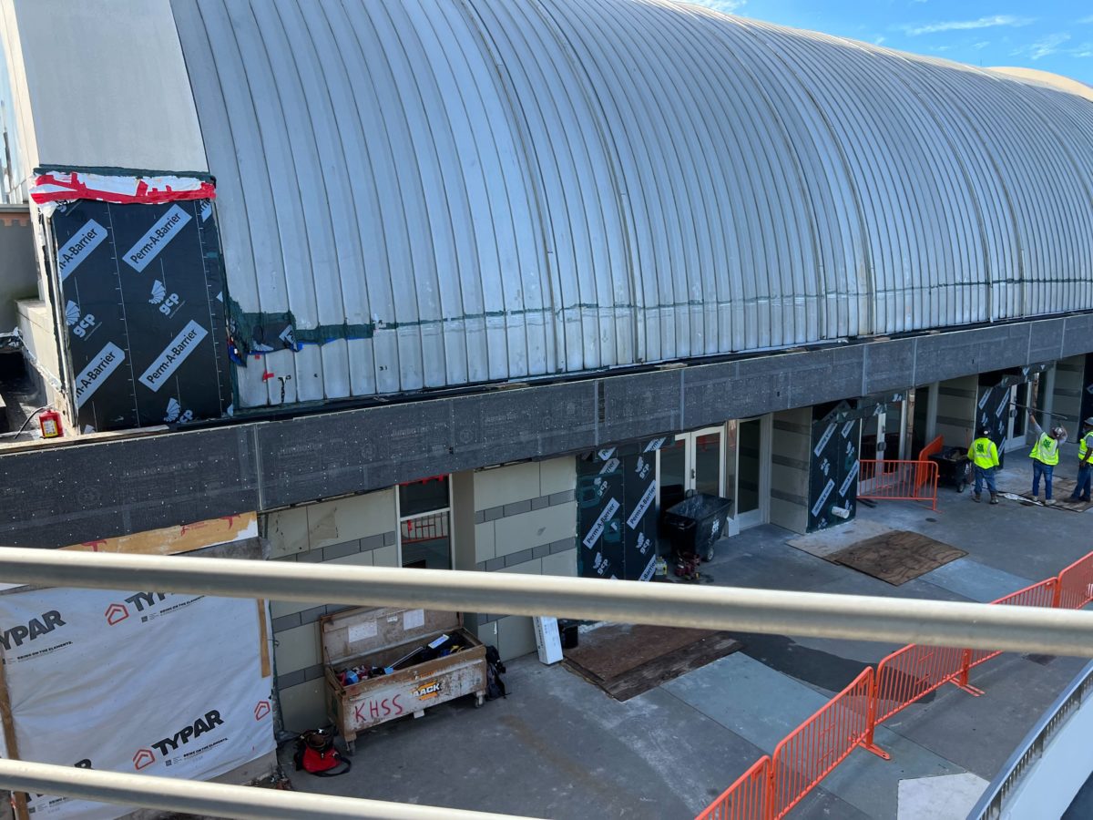 Peeking into the other side of the concrete wall, we can see workers and more construction moving along to hopefully start concrete on the ground.